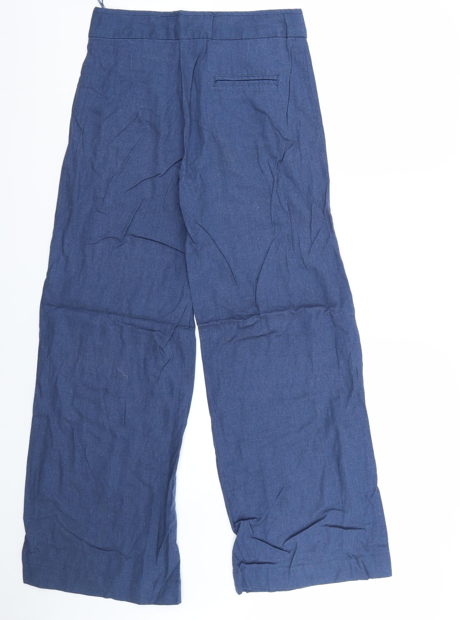 Massimo Dutti Women's Blue Cropped Wide-Leg Trousers Size 8