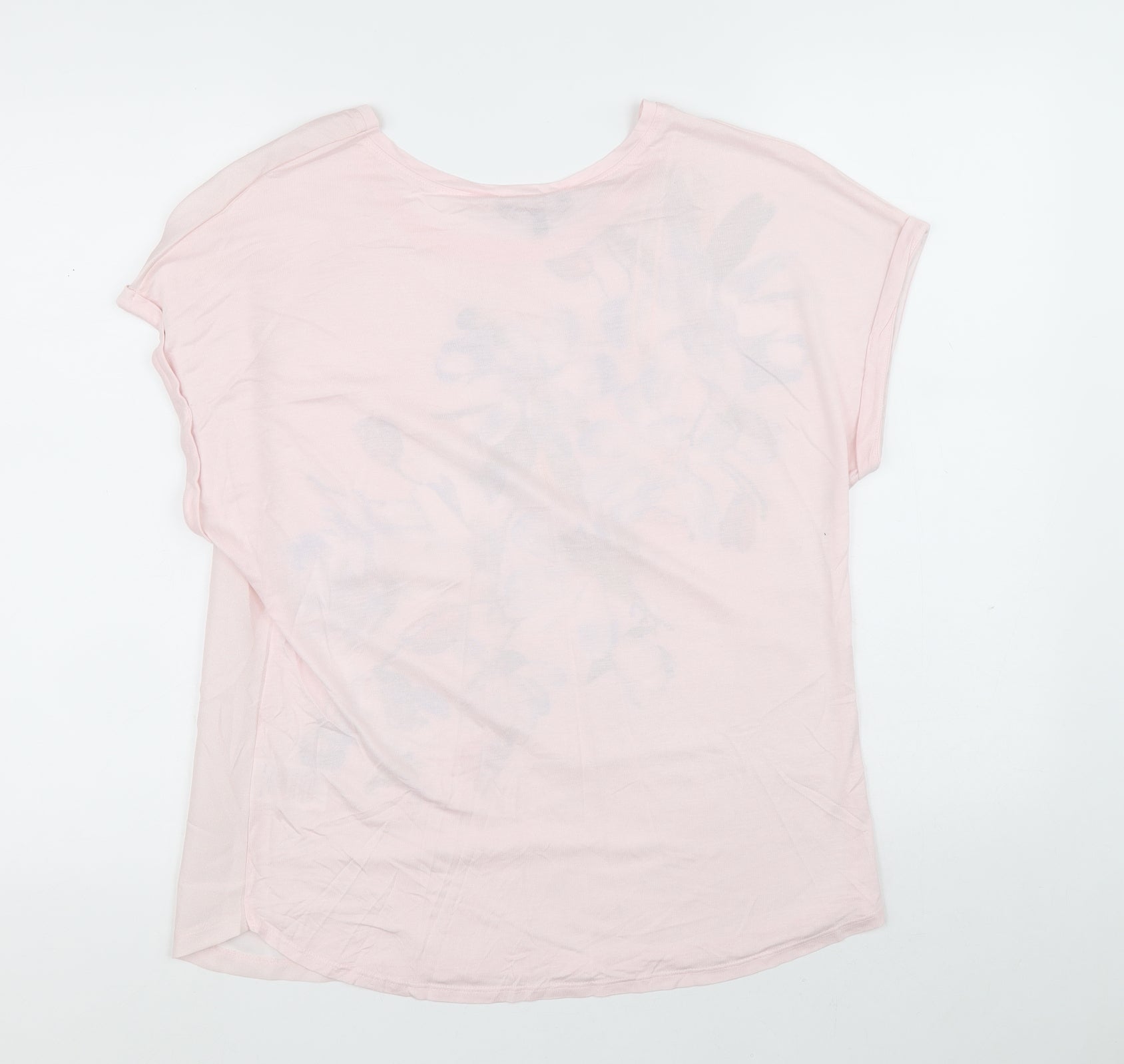 Womens Pink Polyester Basic Blouse Size 14 Round Neck - Flowers