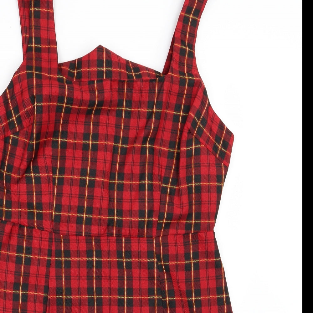 Womens Red Check Pinafore/Dungaree Dress Size 16