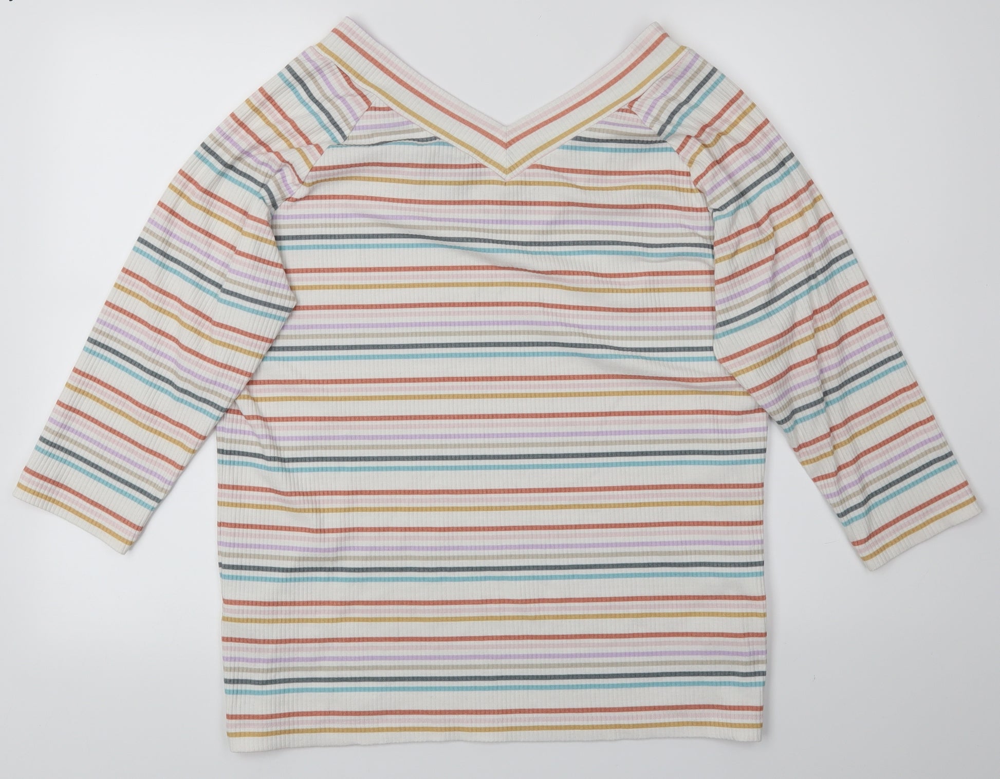 Marks and Spencer Women Beige Striped Short Sleeve Cotton Blend T-Shirt Size 20