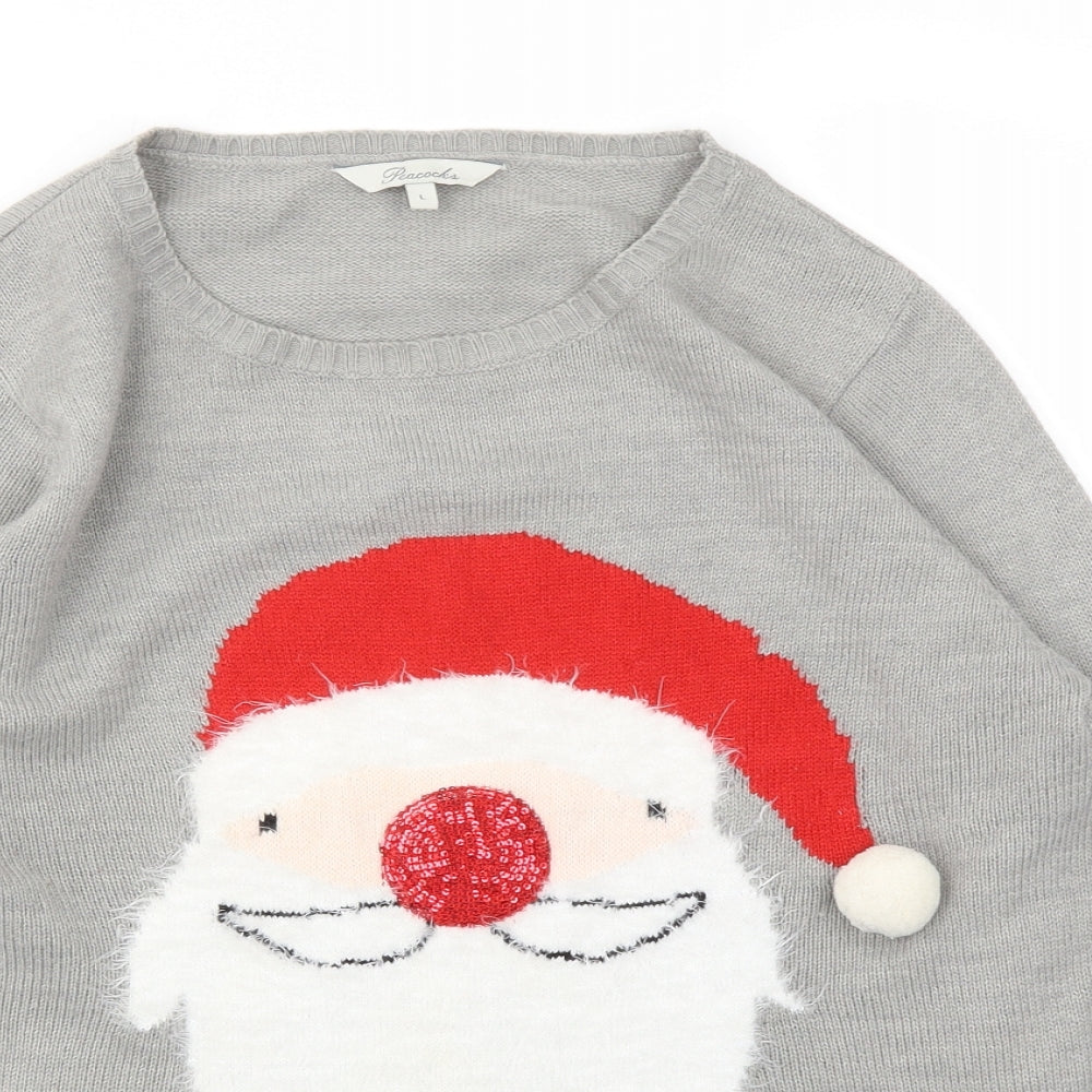 Womens Grey Animal Print Pullover Jumper Size L