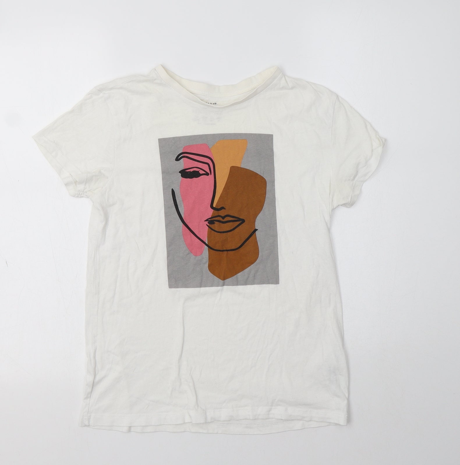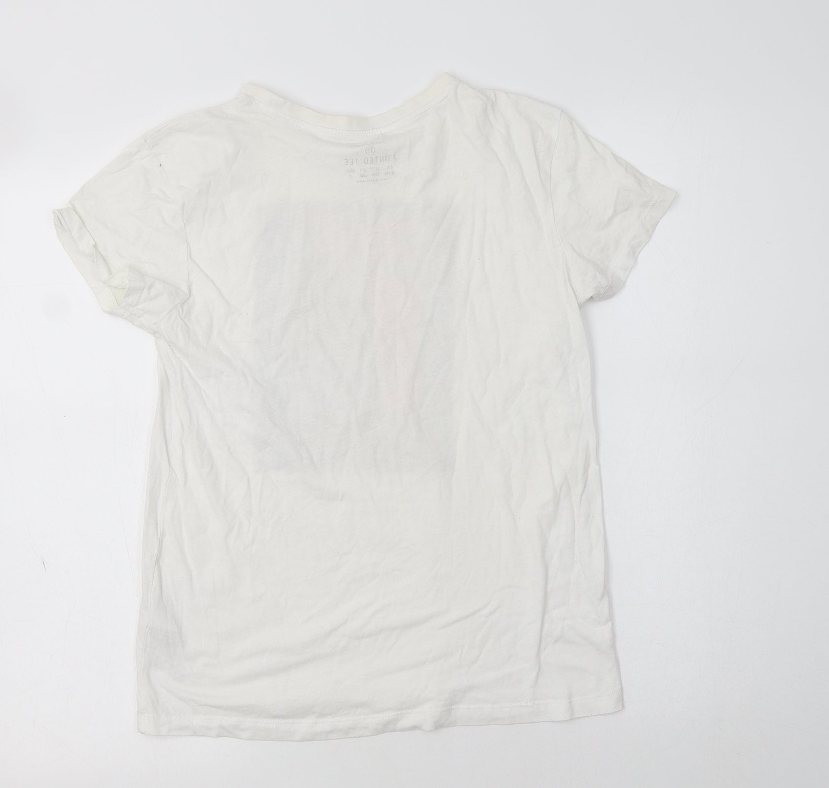 Womens White Cotton Basic T-Shirt Size XS Crew Neck