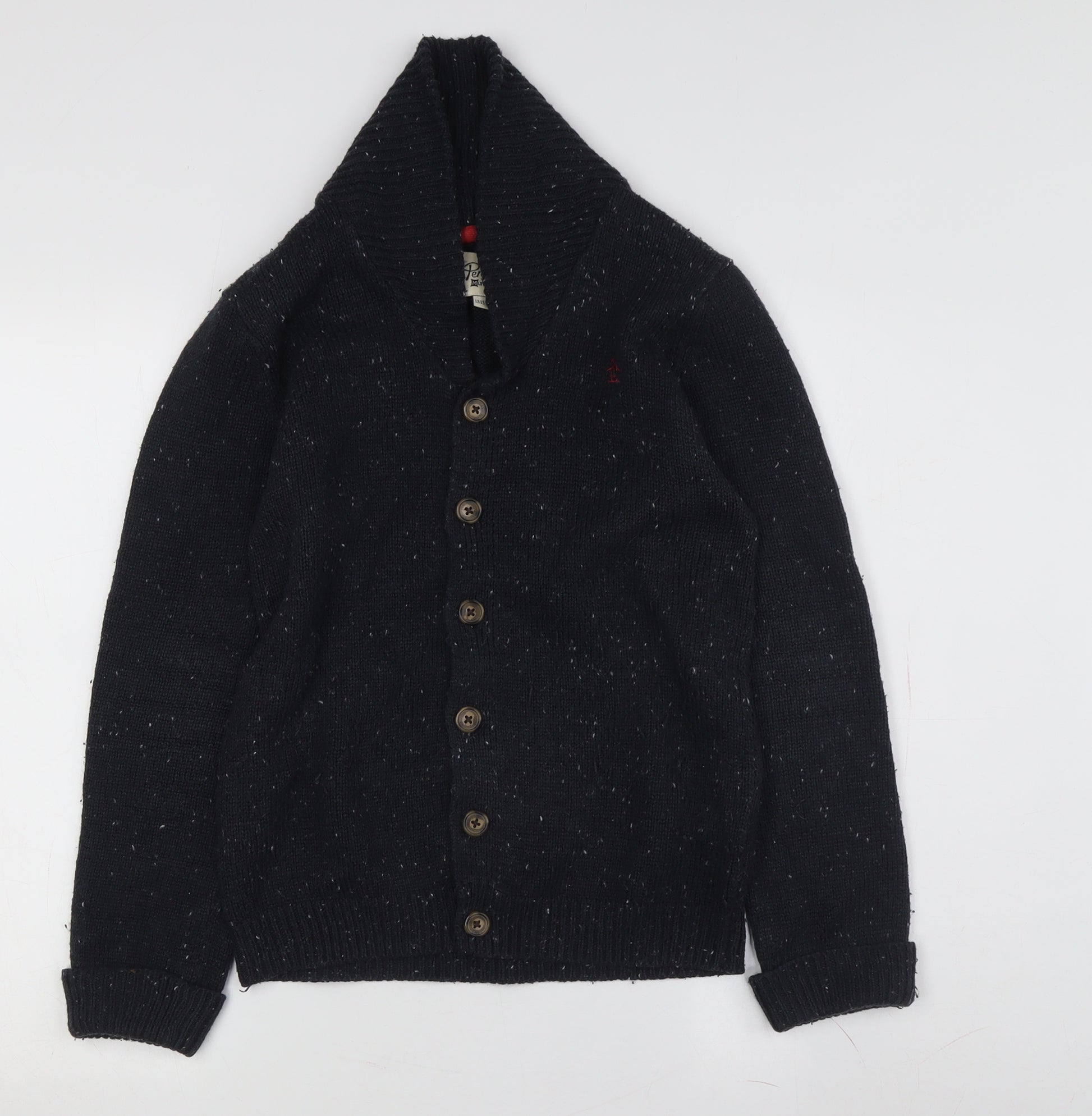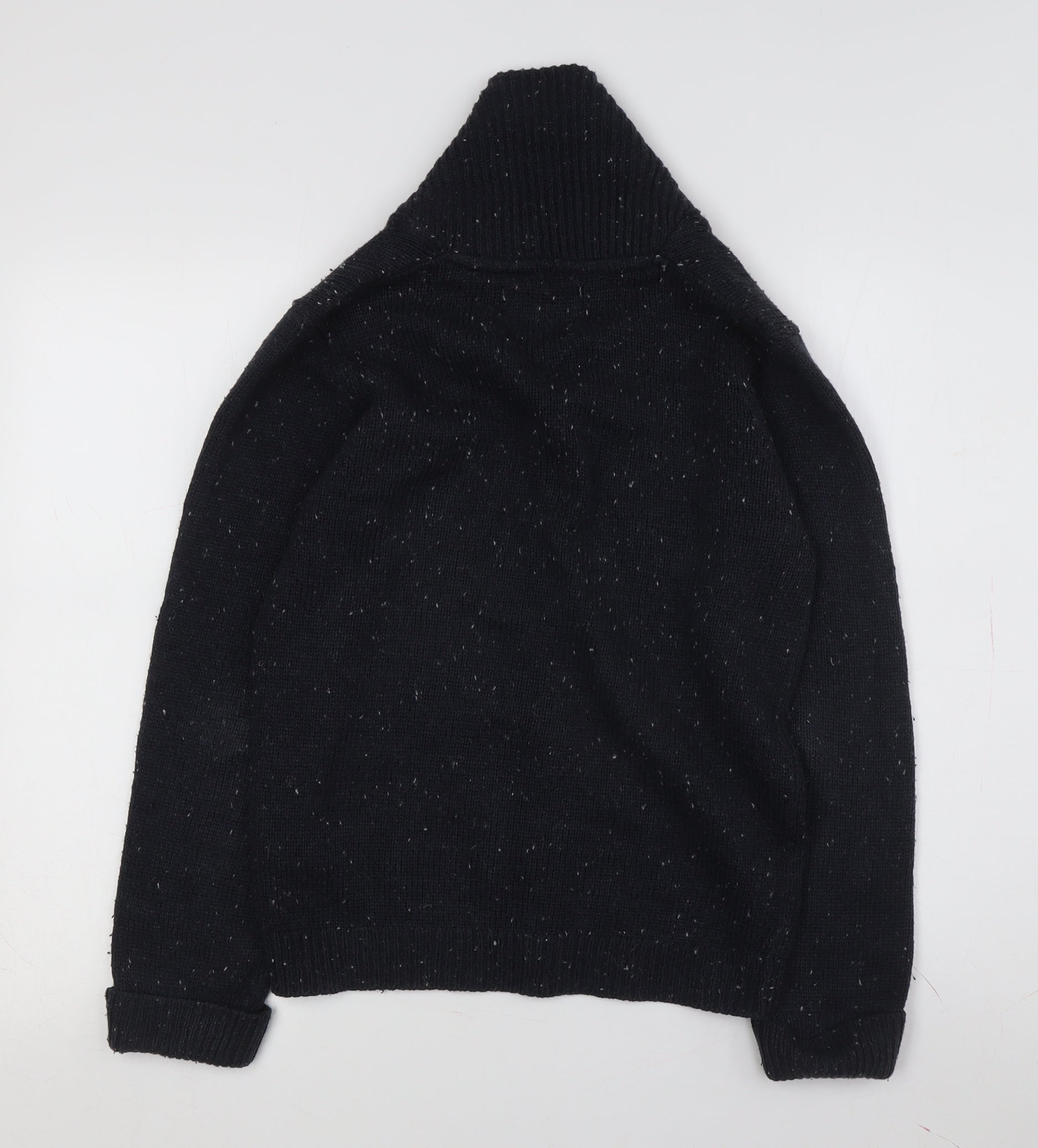Enhance your child's wardrobe with this stylish Penguin Boys Black Cardigan. Perfect for the chilly Autumn and Winter seasons, this tight-knit cardigan offers a cosy heavyweight feel, ensuring warmth and comfort. Crafted entirely from acrylic, it's not only soft on the skin but also easy to care for with its machine washable fabric. The regular fit and long sleeves make it ideal for casual occasions, while the button closure adds a classic touch. Designed with a collared neckline, this cardigan has no pattern, making it versatile and easy to pair with any outfit in your child's collection. Despite lacking original sales tags, it's in excellent condition, ready to provide warmth and style. Don't miss the chance to own this practical and fashionable item at an unbeatable value.