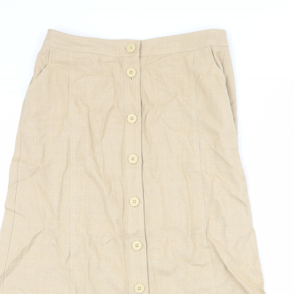 Womens Beige Cotton A-Line Skirt Size 14 Button