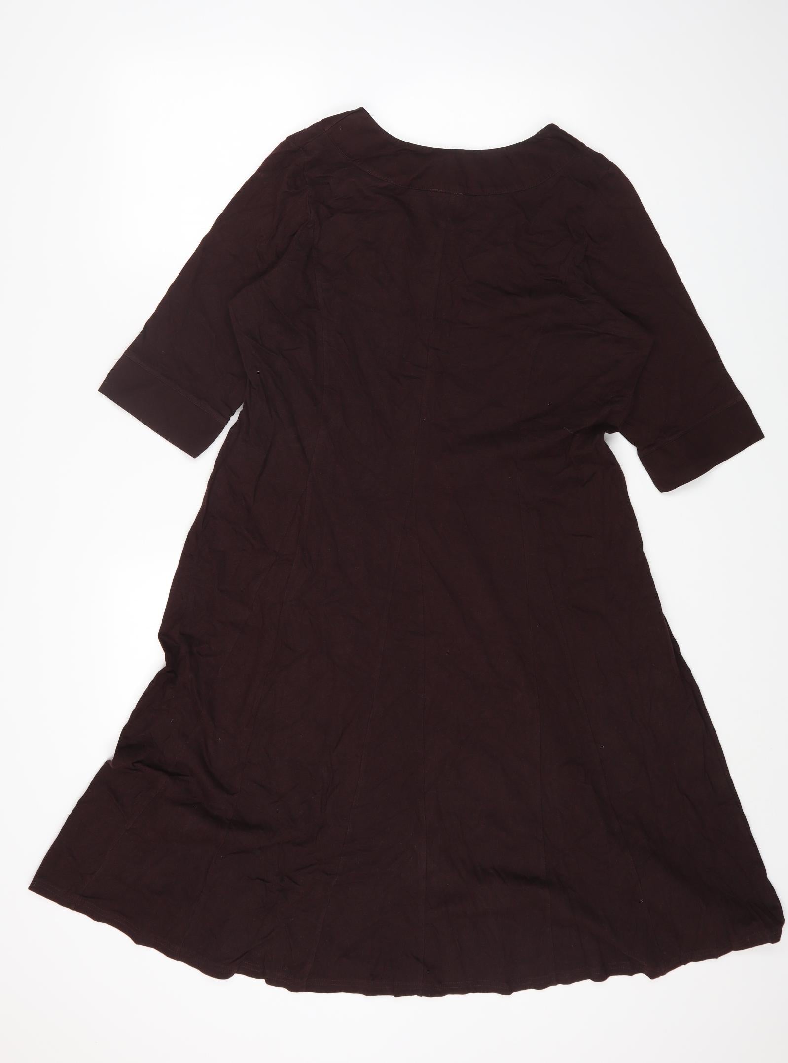 Womens Brown Cotton A-Line Size 16 Round Neck Pullover