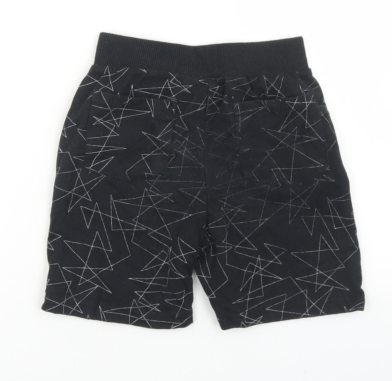 Boys Black Geometric Cotton Sweat Shorts Size 6-7 Years Regular Drawstring