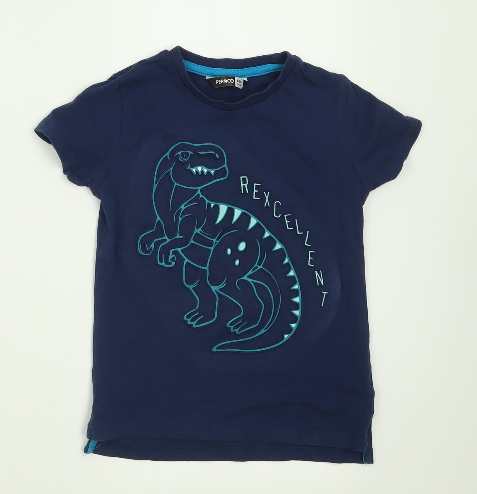 Boys Blue Cotton Basic T-Shirt Size 3-4 Years Crew Neck Pullover - T-Rex