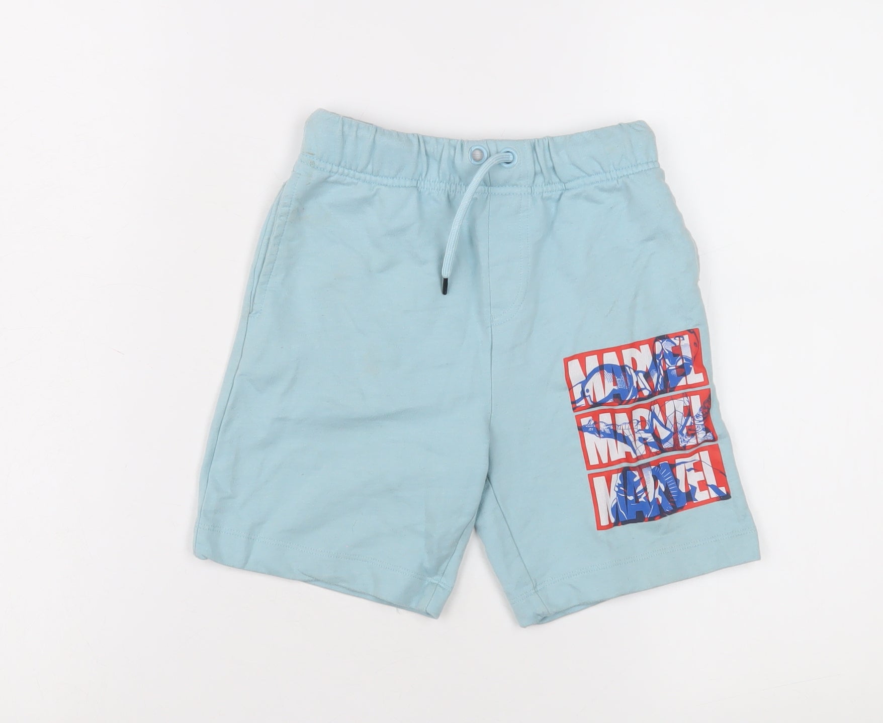 These boys' Pep&Co shorts, themed with popular Marvel characters, are perfect for young superhero fans. Made from soft and breathable 100% cotton jersey, these blue shorts offer a comfortable fit with an elastic waistband and drawstring closure. Tailored for regular fit, they are ideal for casual wear during summer days. The Marvel comic motif adds a fun element to any outfit, making it a great choice for daily adventures or themed gatherings. Machine washable for easy care, these shorts are in excellent condition, ready to become a favourite in any young wardrobe.