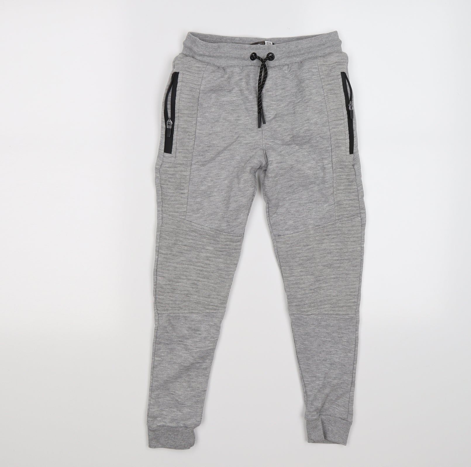 Boys Grey Striped Jersey Jogger Trousers Size 8-9 Years