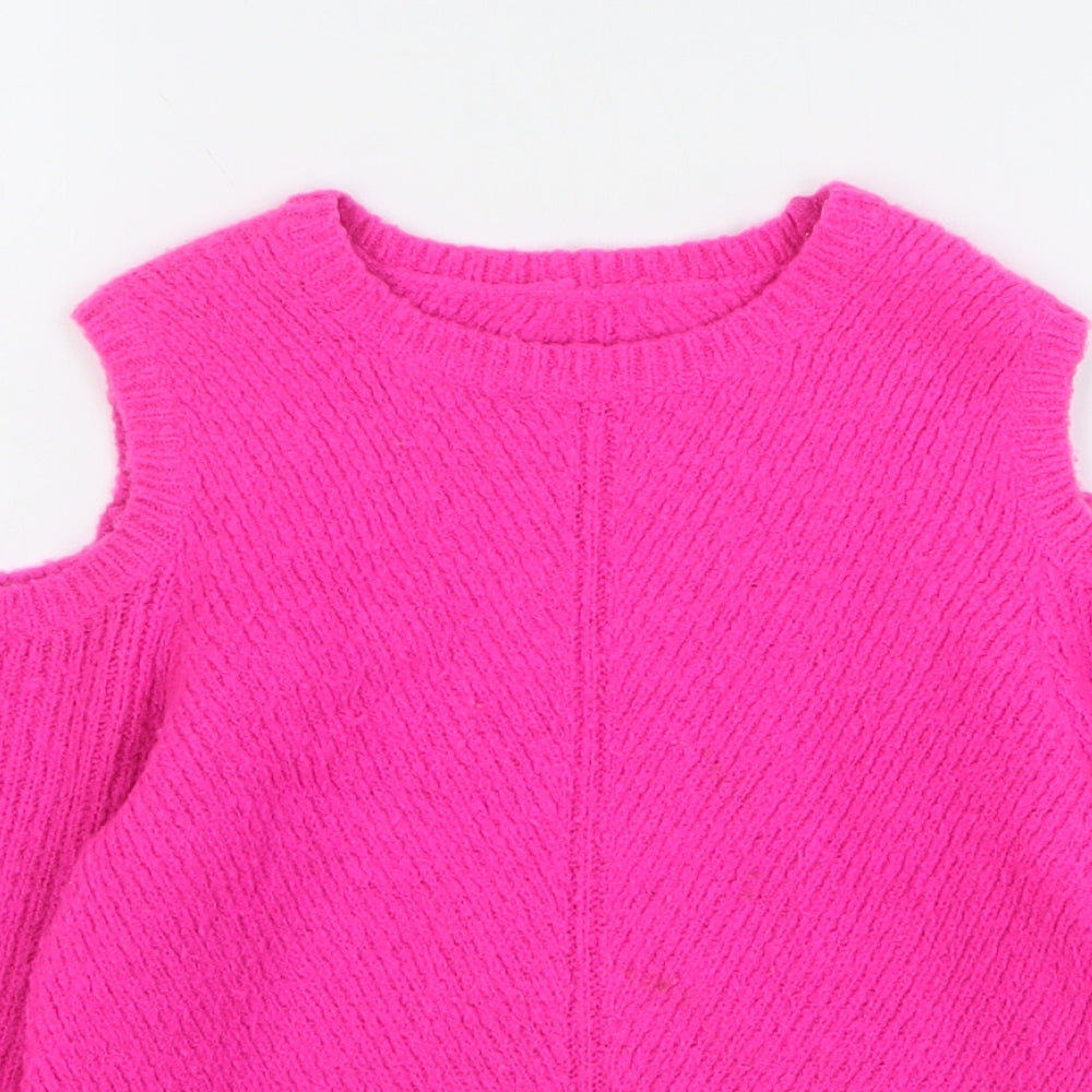 Girls Pink Round Neck Acrylic Pullover Jumper Size 6-7 Years Pullover - Cold Shoulder
