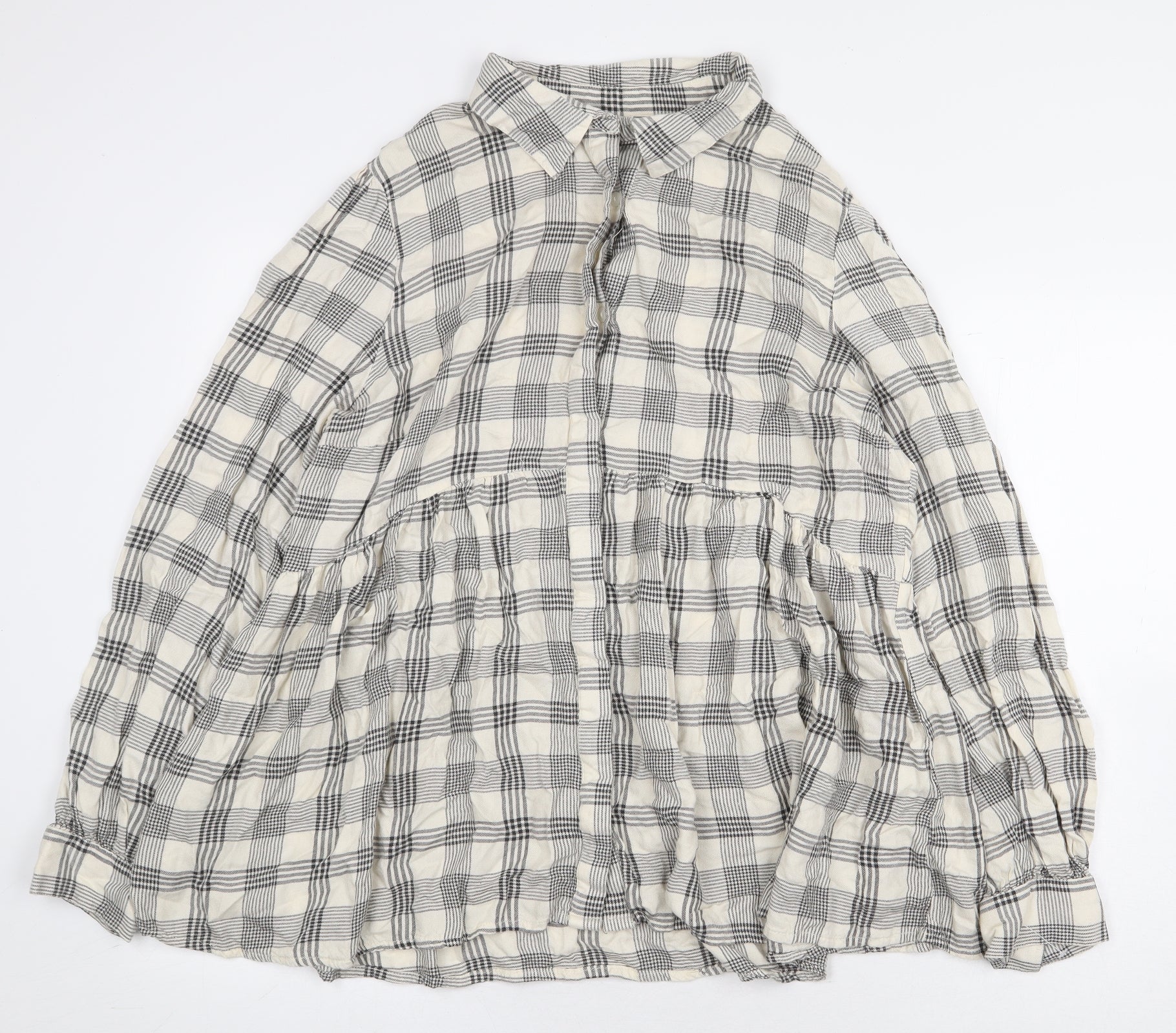Womens Beige Plaid Viscose Basic Button-Up Size 18 Collared