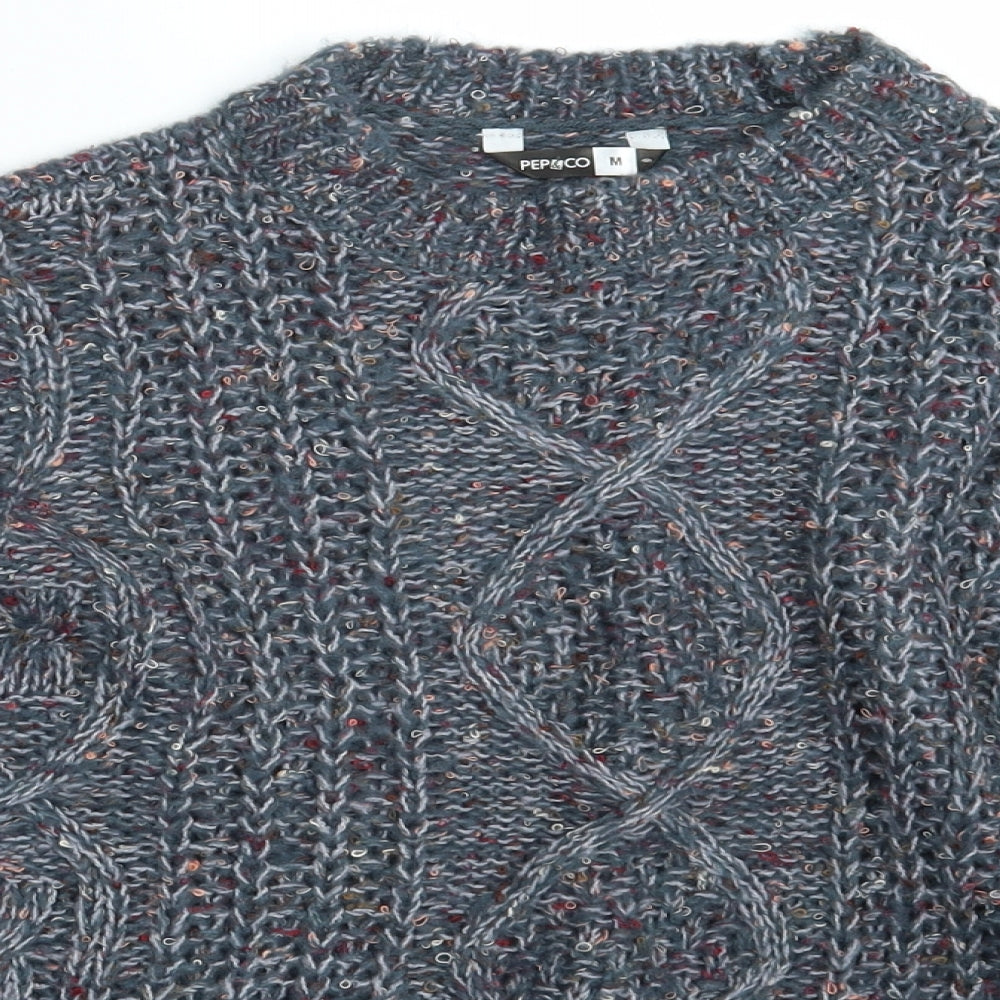 New Look Women's Blue Cable-Knit Crew Neck Jumper M