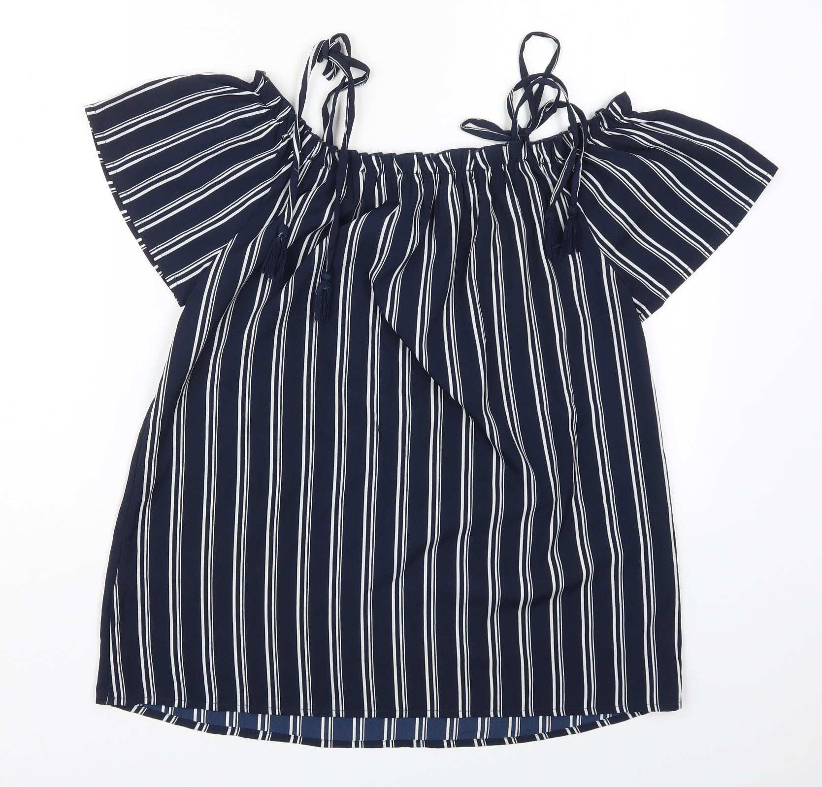 Womens Blue Striped Polyester Basic Blouse Size 12 Off the Shoulder