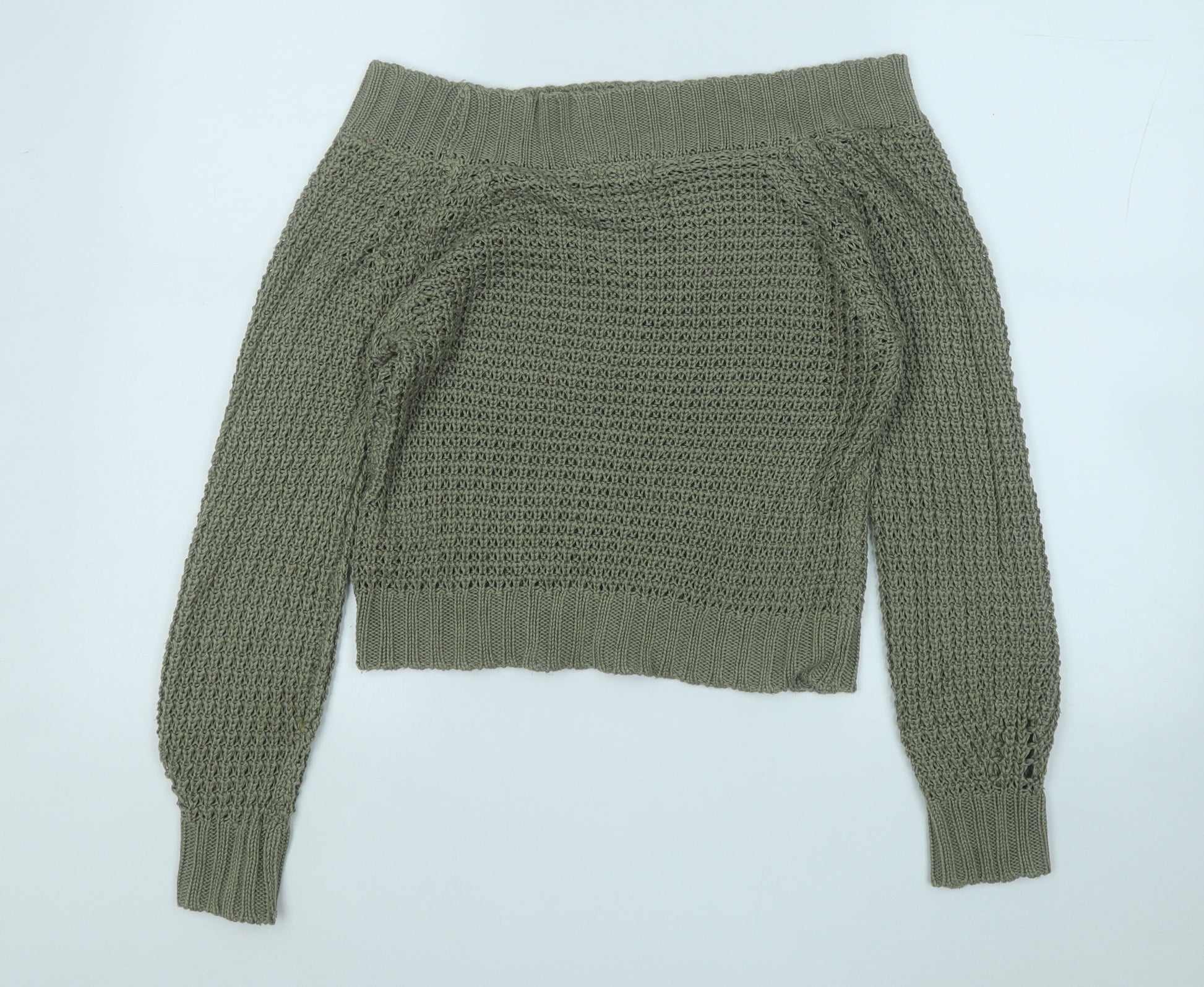 Womens Green Round Neck Acrylic Pullover Jumper Size S
