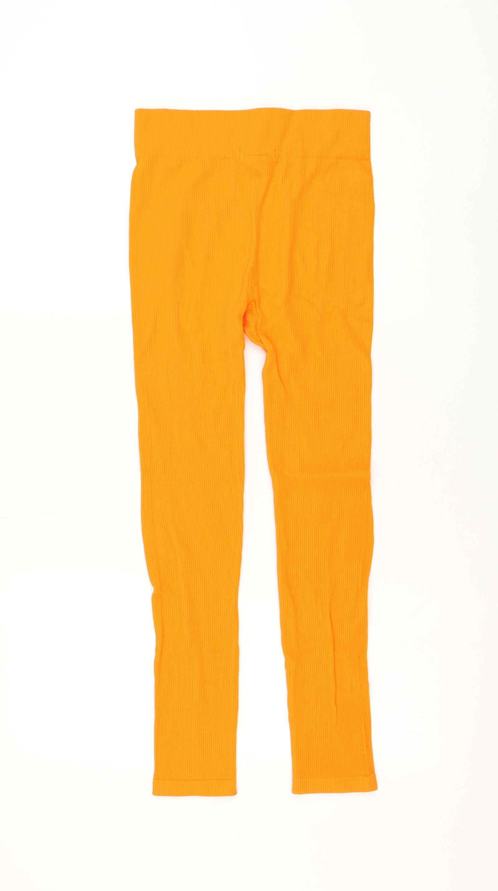 Womens Orange Nylon Compression Leggings Size 16 L25 in Regular Pullover