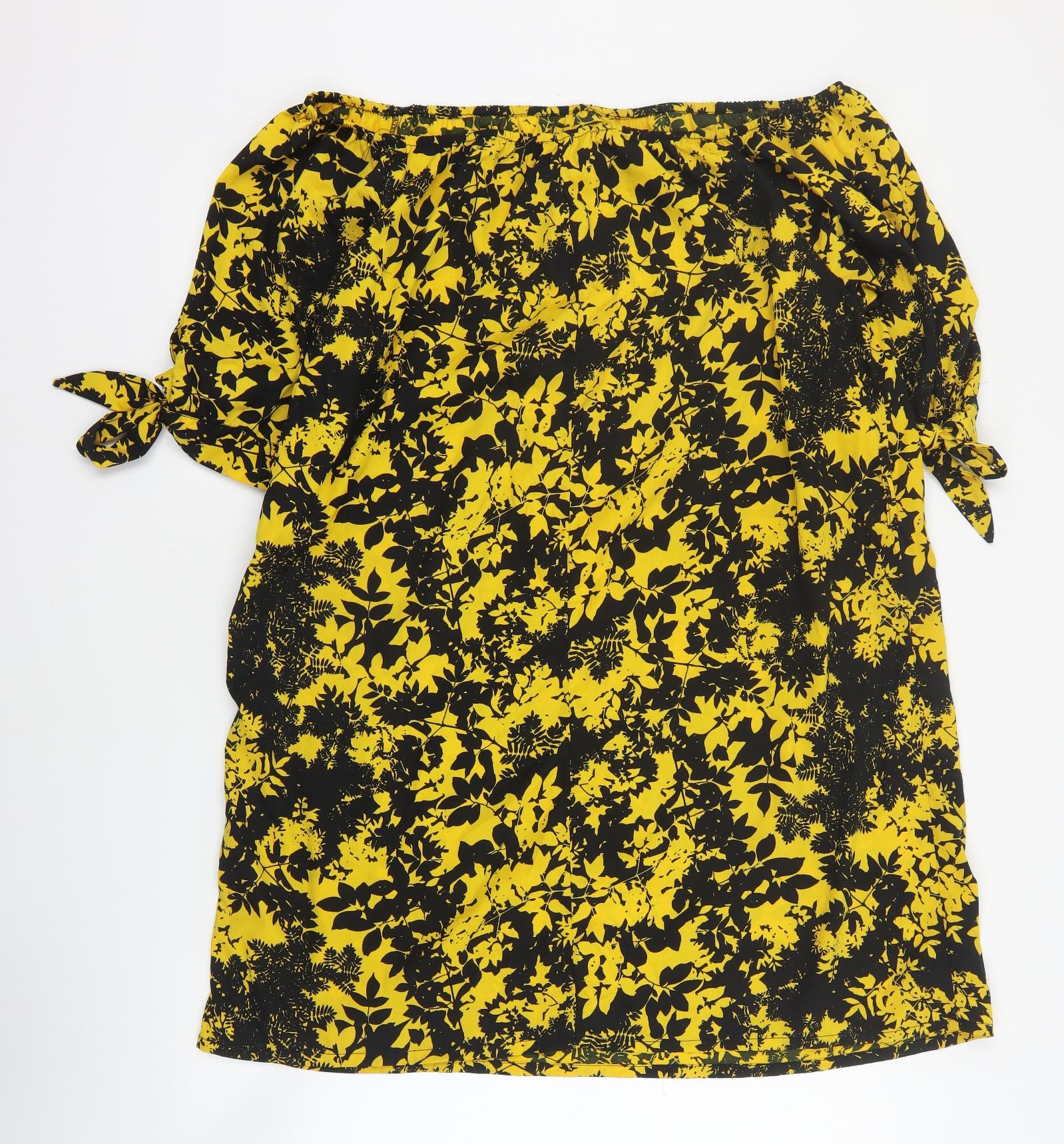 Womens Yellow Floral Polyester Mini Size 14 Off the Shoulder Pullover
