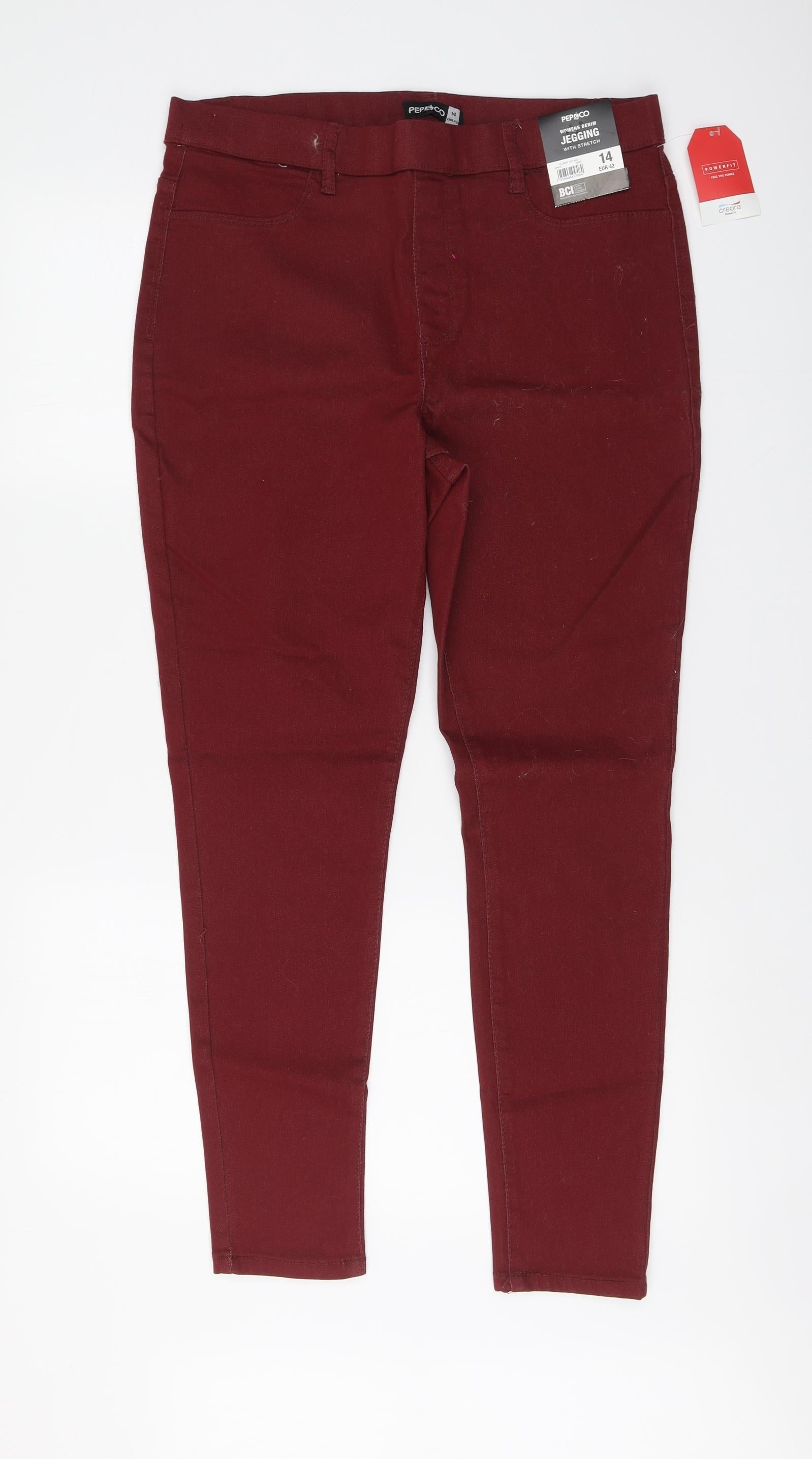 Womens Red Cotton Jegging Leggings Size 14 L28 in