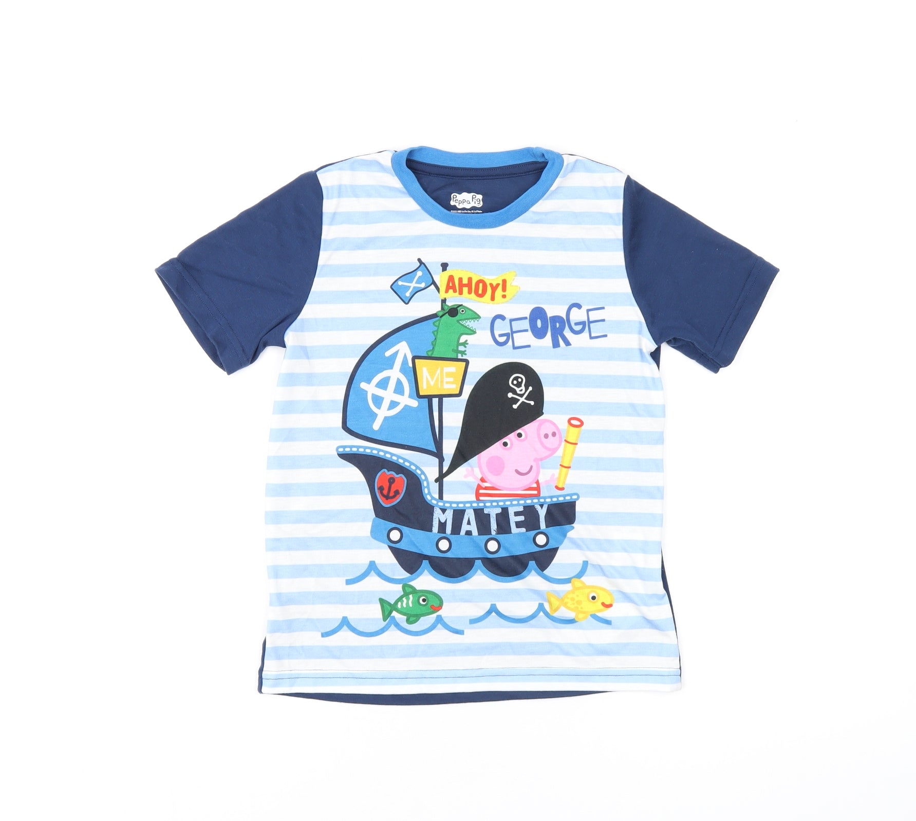 Boys Blue Striped Polyester Basic T-Shirt Size 7-8 Years Round Neck Pullover