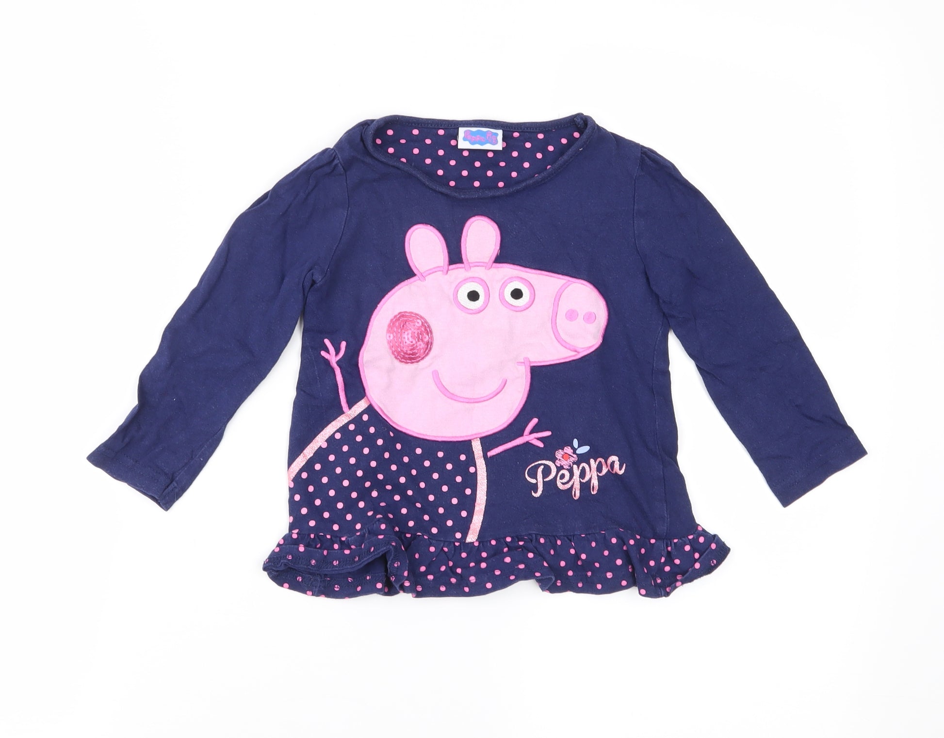 Girls Blue Polka Dot Jersey Basic T-Shirt Size 2-3 Years