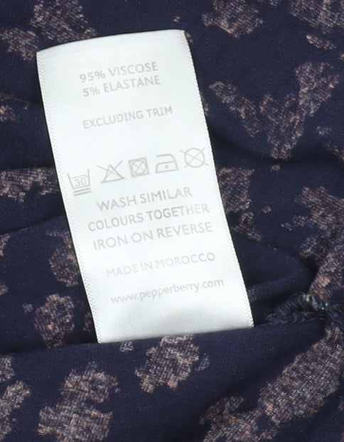 Elevate your wardrobe with this Pepperberry women's dress, expertly designed to be both versatile and stylish. Crafted in a flattering fit & flare style, this dress in a serene shade of blue is perfect for any casual or semi-formal occasion. The elegant floral pattern adds a touch of femininity, making it ideal for those who appreciate classic yet contemporary fashion. Designed with knee-length dimensions, the dress is comfortably lined and features 3/4 sleeves for a flattering silhouette. Made primarily of viscose with a hint of elastane, it promises a soft, breathable wear that moves with you throughout the day. The V-neckline adds an elegant touch, enhancing the dress's overall appeal. Easy to maintain, the dress is machine washable, ensuring it retains its vibrant colour and shape wear after wear. With no visible defects, this garment is in excellent condition, ready to add charm to your everyday ensembles or become a staple for cocktail parties. Own this delightful piece and redefine your fashion statement today.