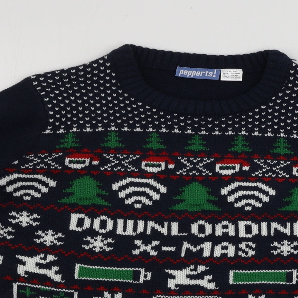 Boys Blue Geometric Pullover Jumper Size 6-7 Years - Christmas Jumper