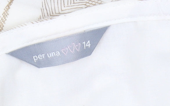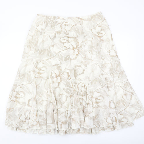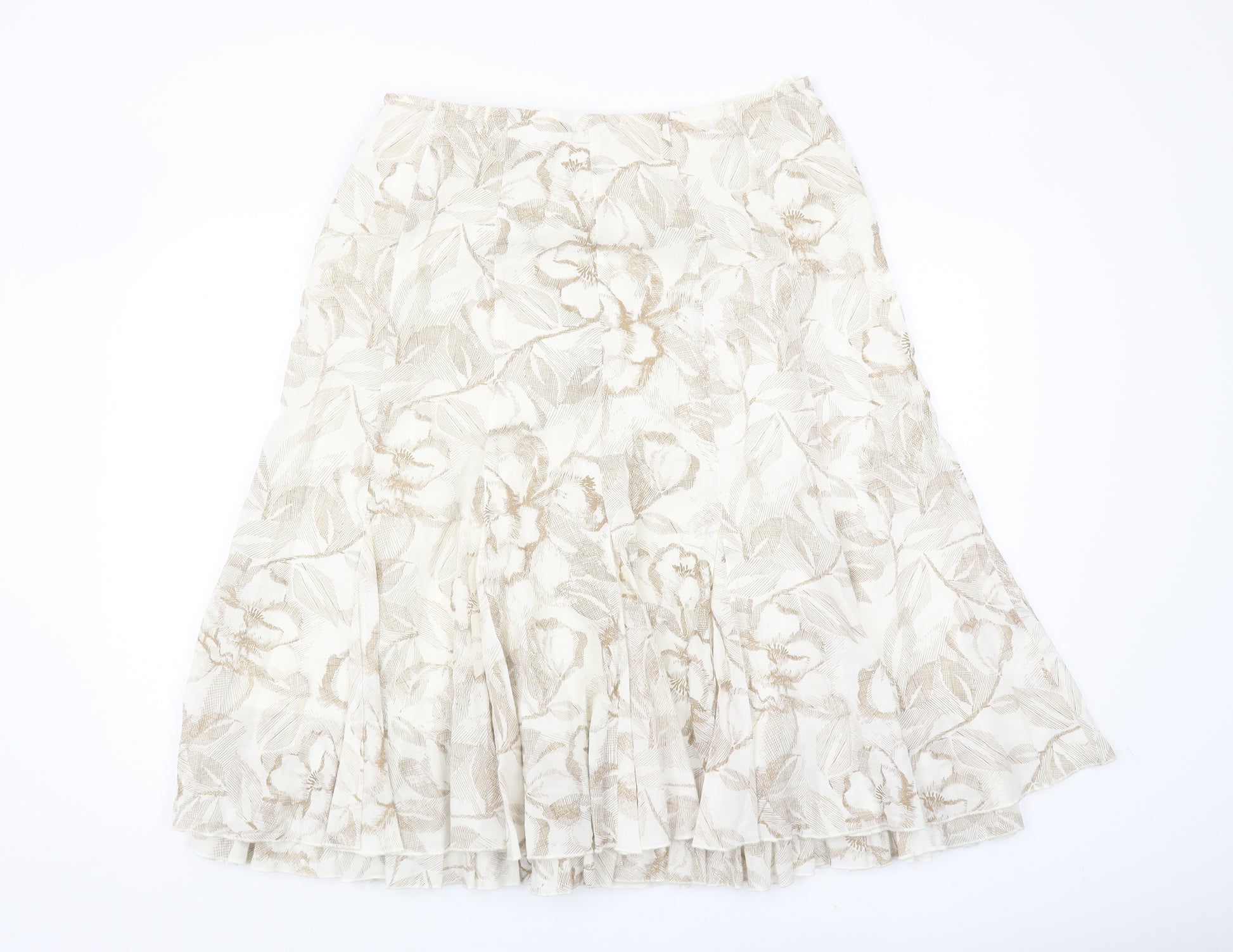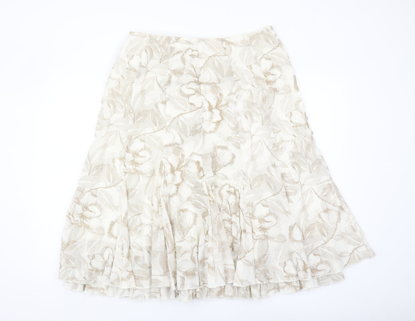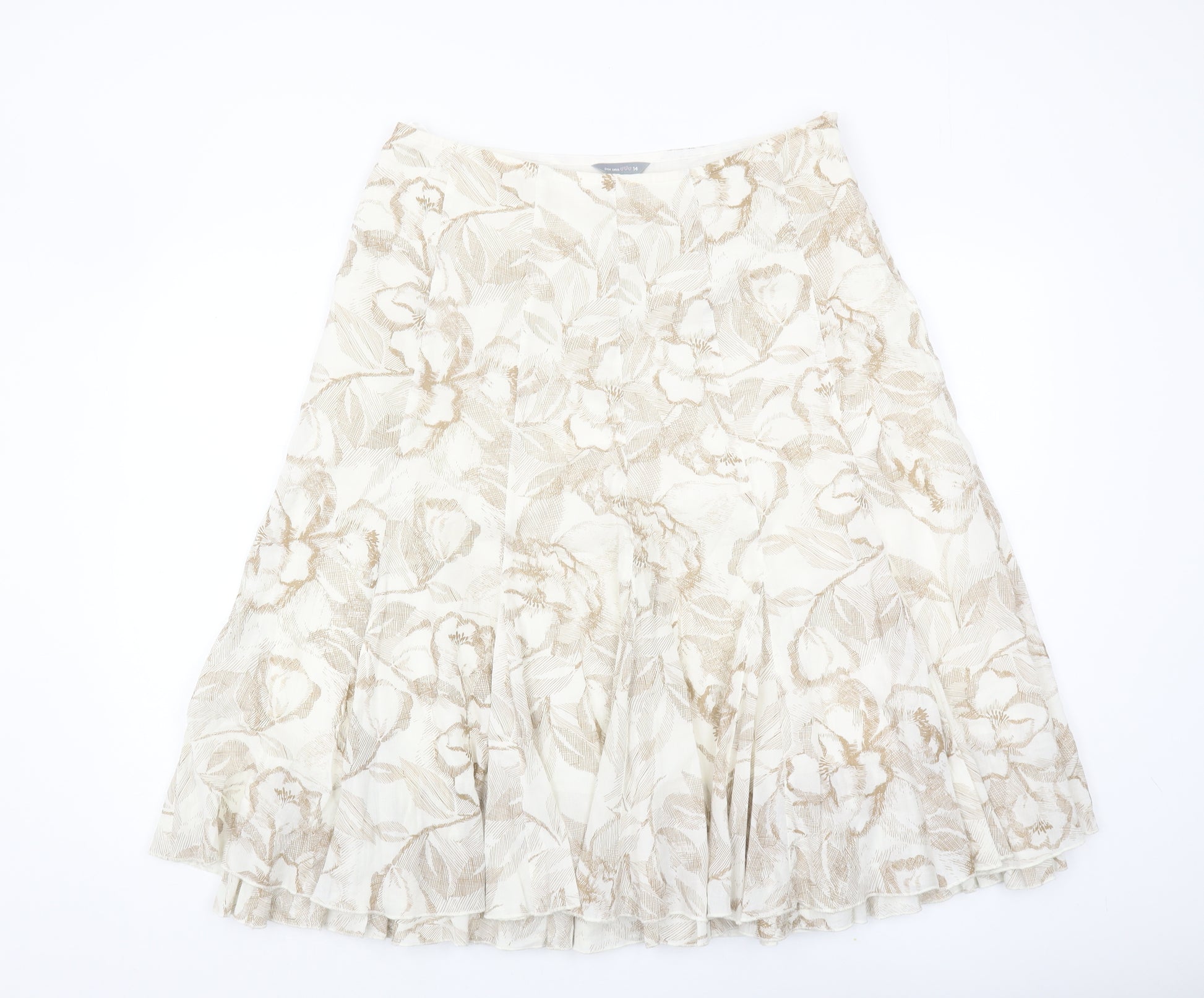Embrace a touch of elegance with this Per Una midi skirt. Crafted for the modern woman, this skirt features a captivating beige floral pattern, perfect for the spring and summer seasons. Its flared style adds a graceful flow to your every step, while the regular fit ensures comfort. Made from a quality blend of cotton and polyamide, this skirt offers both comfort and durability, making it a staple in your casual wardrobe. Ideal for casual outings, pair this lovely piece with your favourite top for an effortless chic look. The midi length and mid-rise design make it flattering for all body types. Machine washable for easy care, this skirt is in excellent condition, showing no visible signs of wear. Add this feminine flair to your collection and enjoy endless styling possibilities.