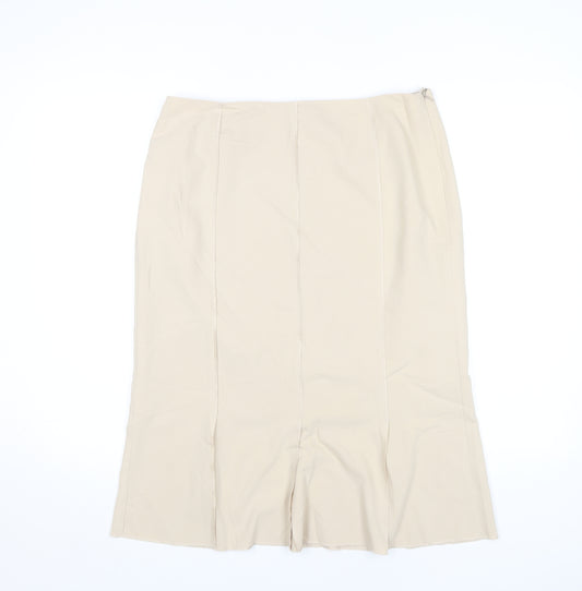 Marks and Spencer Women Beige Flare Suede Midi Skirt Size 14