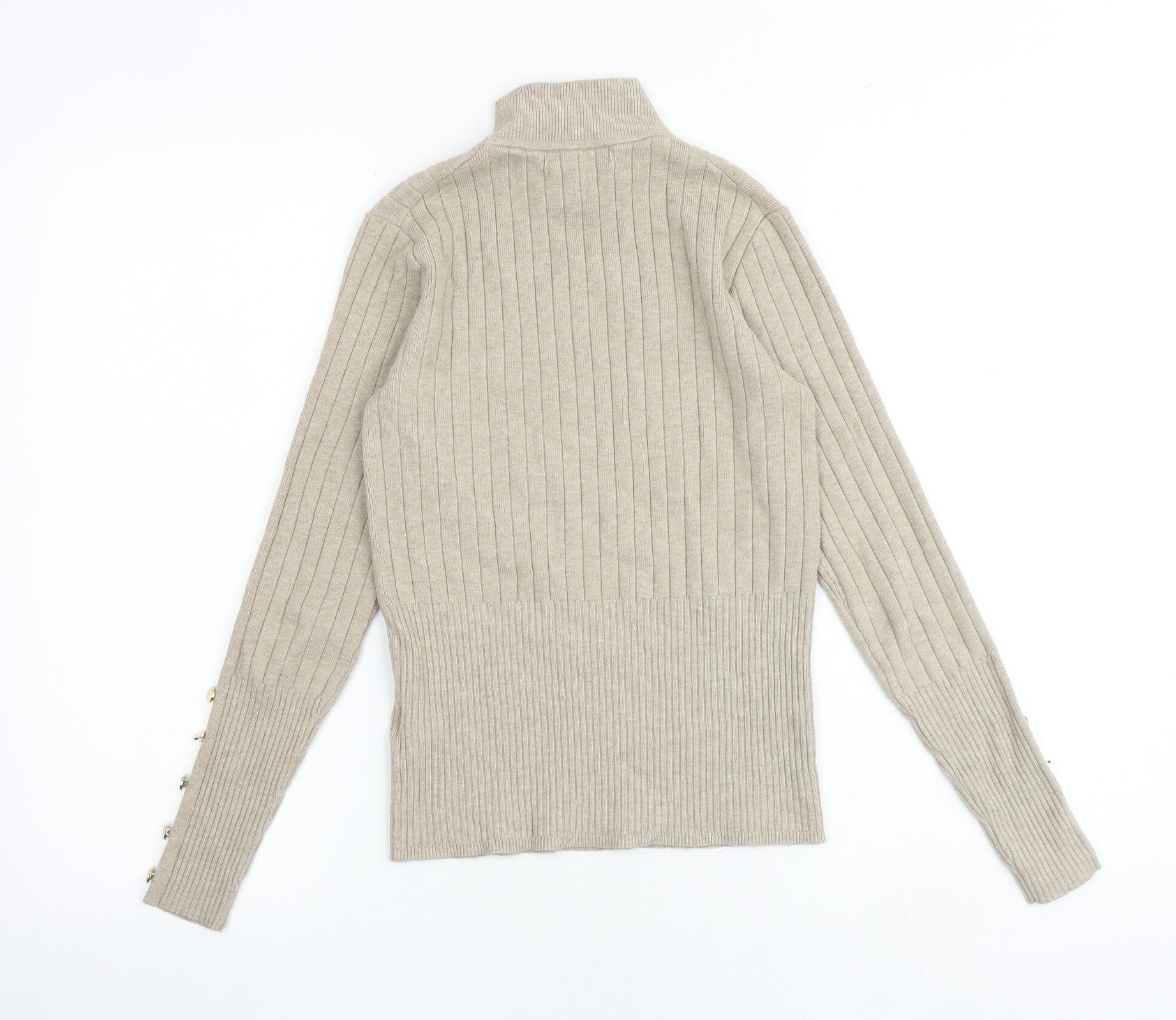 Womens Beige High Neck Viscose Pullover Jumper Size 10