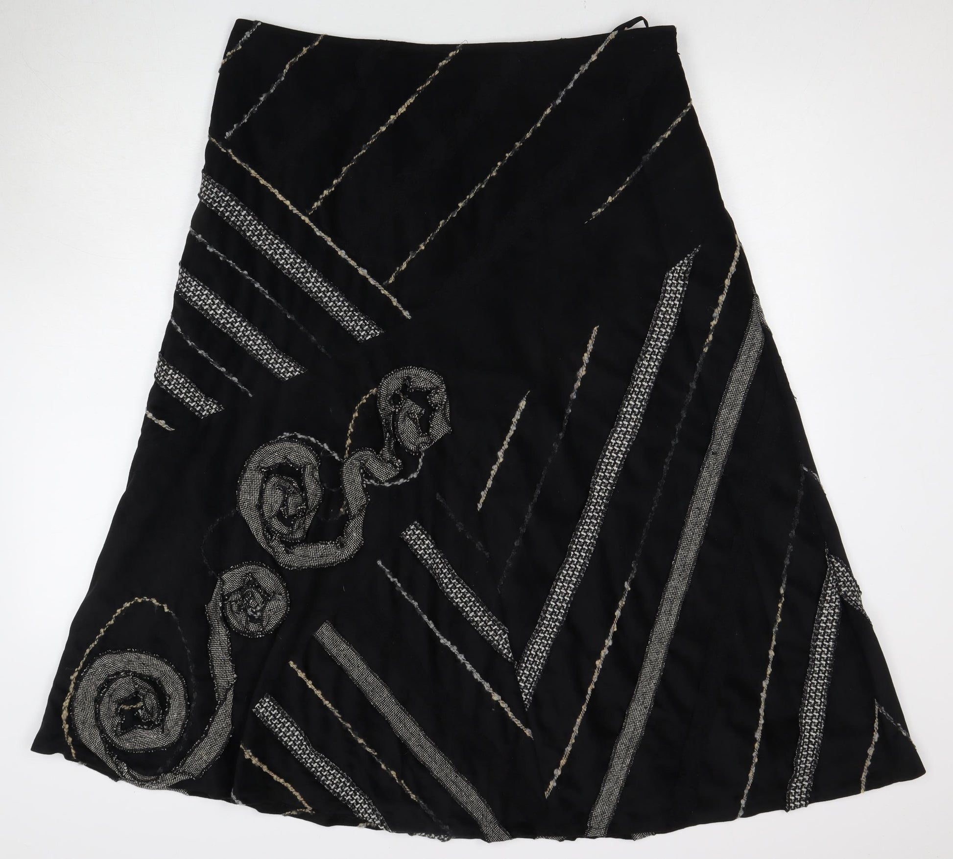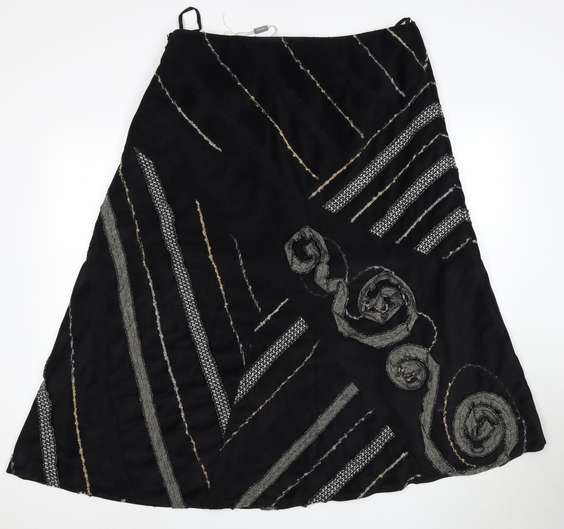 Introducing the elegant and chic Per Una Women's A-Line Skirt in a versatile size 18. This stunning black skirt features intricate sequined accents, adding a touch of sparkle and sophistication to your wardrobe. Crafted from high-quality 100% polyester, the skirt offers a luxurious feel and is fully lined for added comfort. Designed with an A-Line silhouette, it provides a flattering fit for all body shapes. Ideal for various occasions, whether formal events or casual outings, this Per Una skirt pairs seamlessly with a range of tops and footwear. Its timeless black colour and elegant design ensure you'll make a stylish impression wherever you go. Don't miss the chance to add this brand new, impeccable piece to your collection.