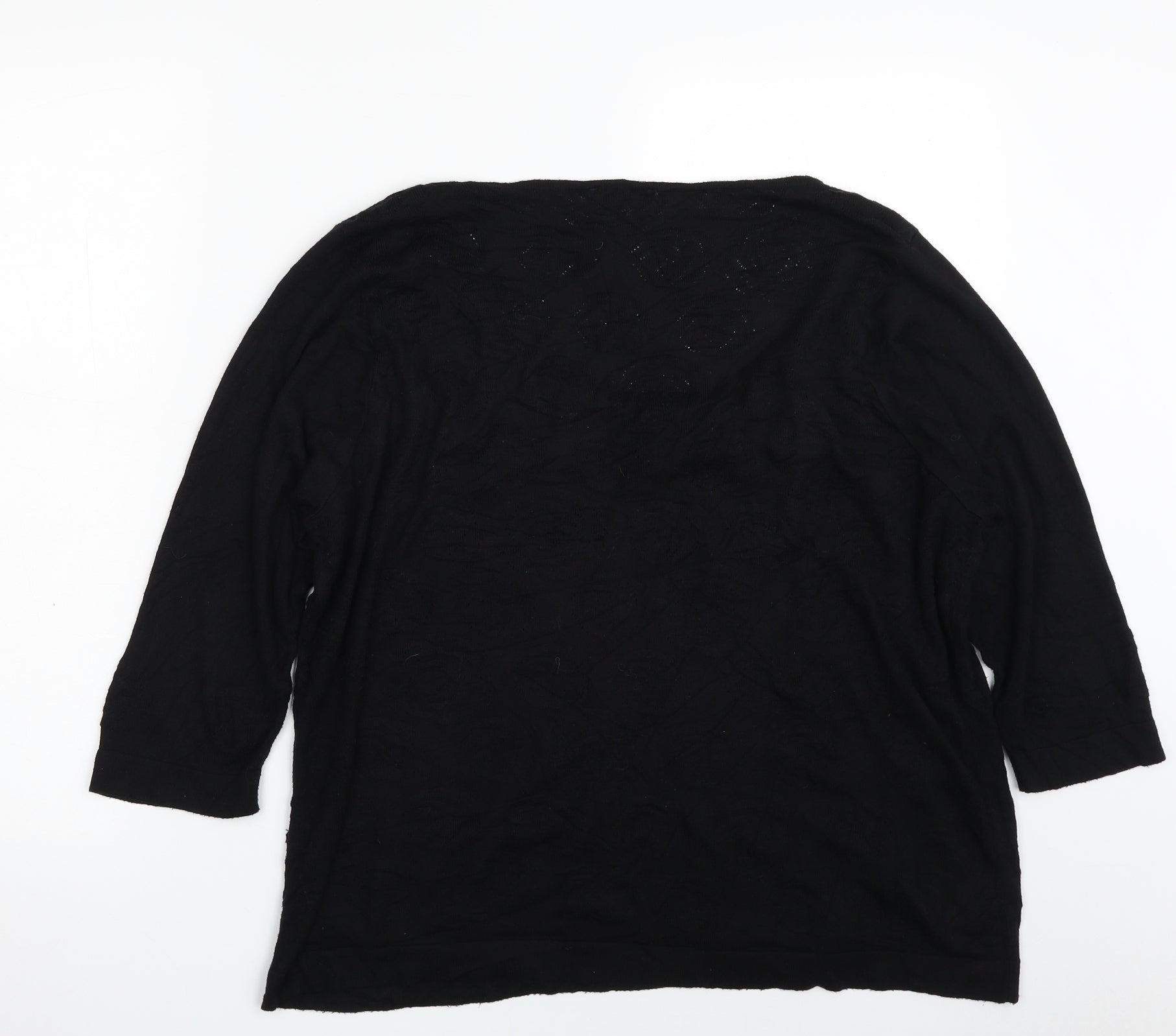 Womens Black Boat Neck Animal Print Viscose Pullover Jumper Size 20