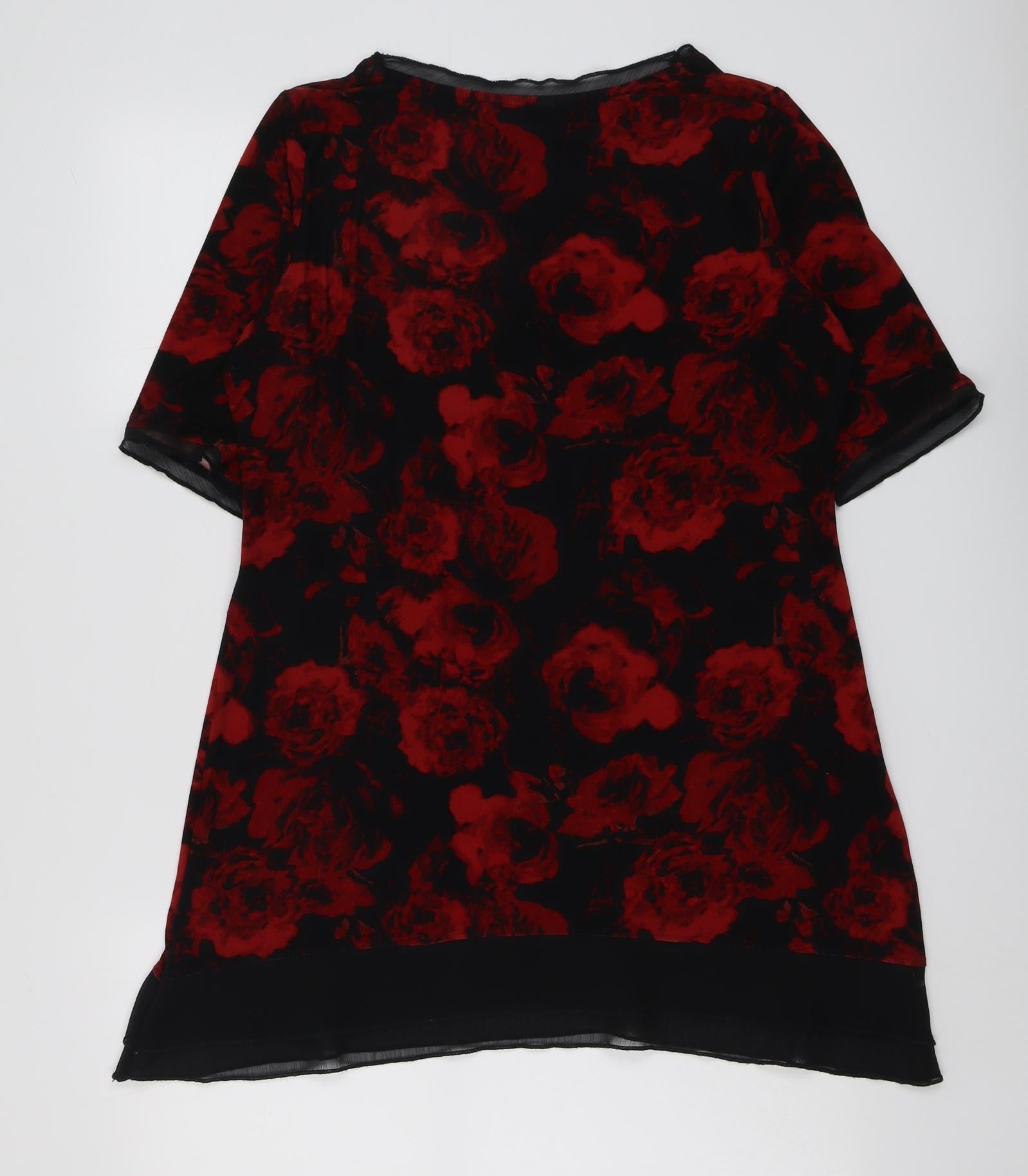 Womens Black Floral Polyester Basic Blouse Size 14 Scoop Neck