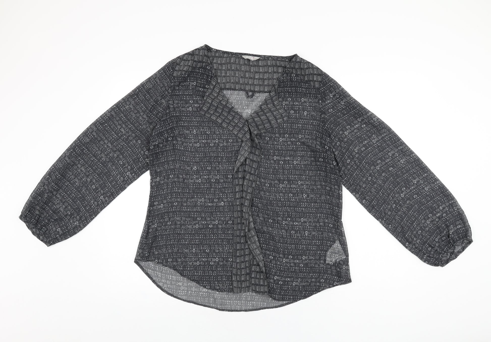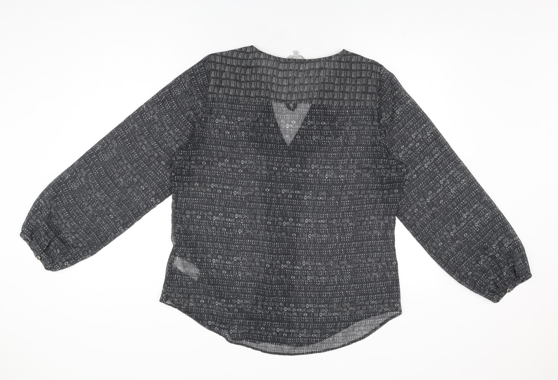Womens Black Geometric Polyester Basic Blouse Size 16 V-Neck