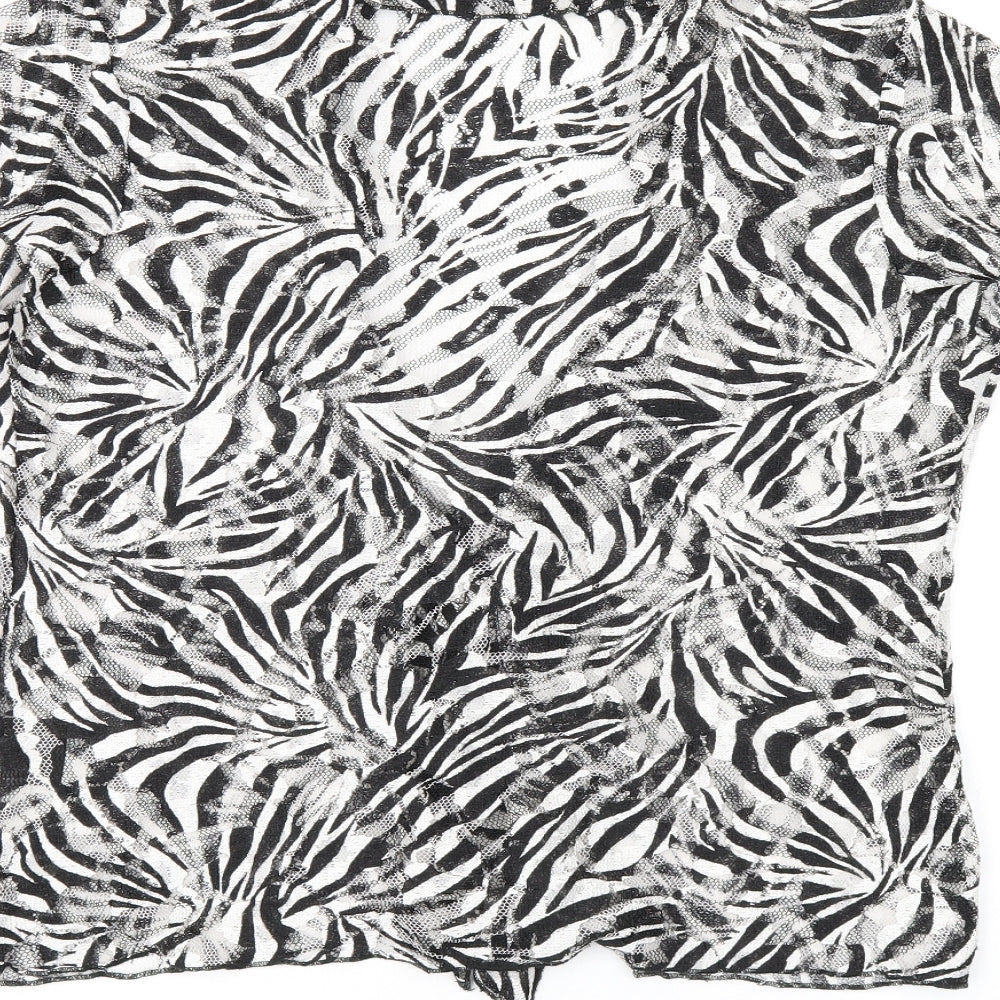 Womens Black Geometric Polyester Basic T-Shirt Size 16 Collared
