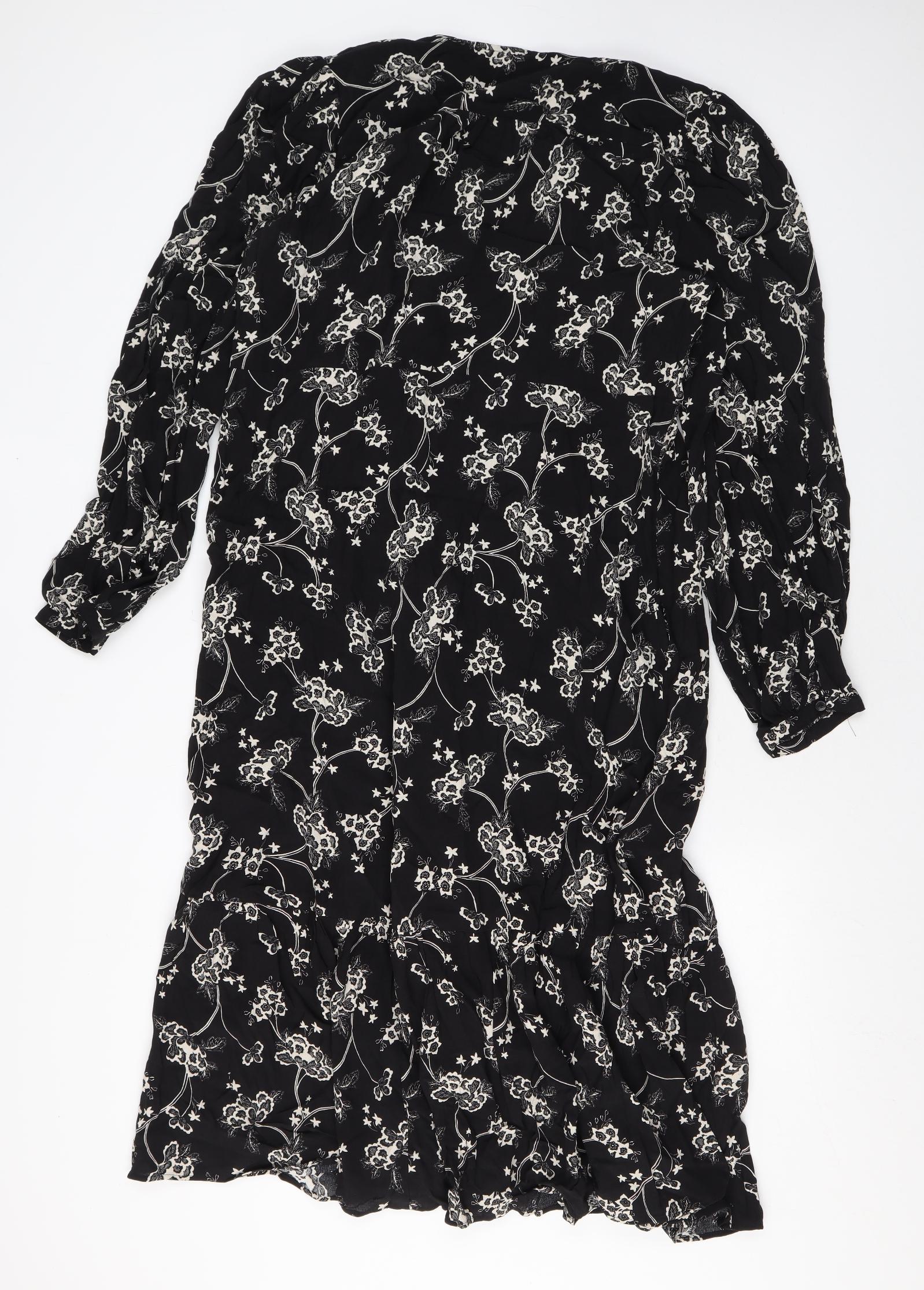 Womens Black Geometric Viscose Maxi Size 18 V-Neck Zip