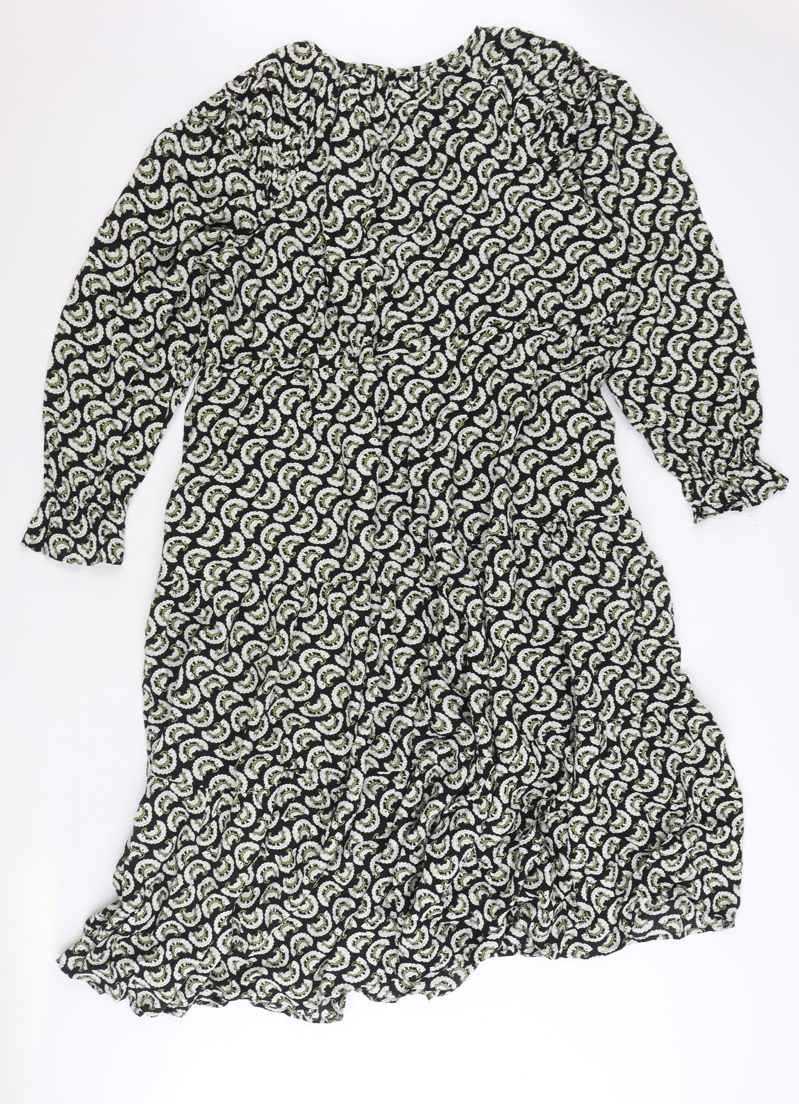 Womens Black Geometric Viscose Trapeze & Swing Size 18 Round Neck Button