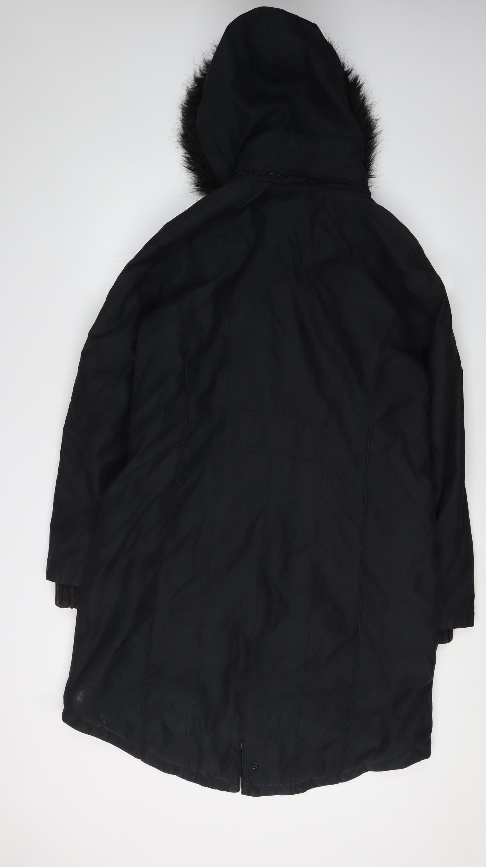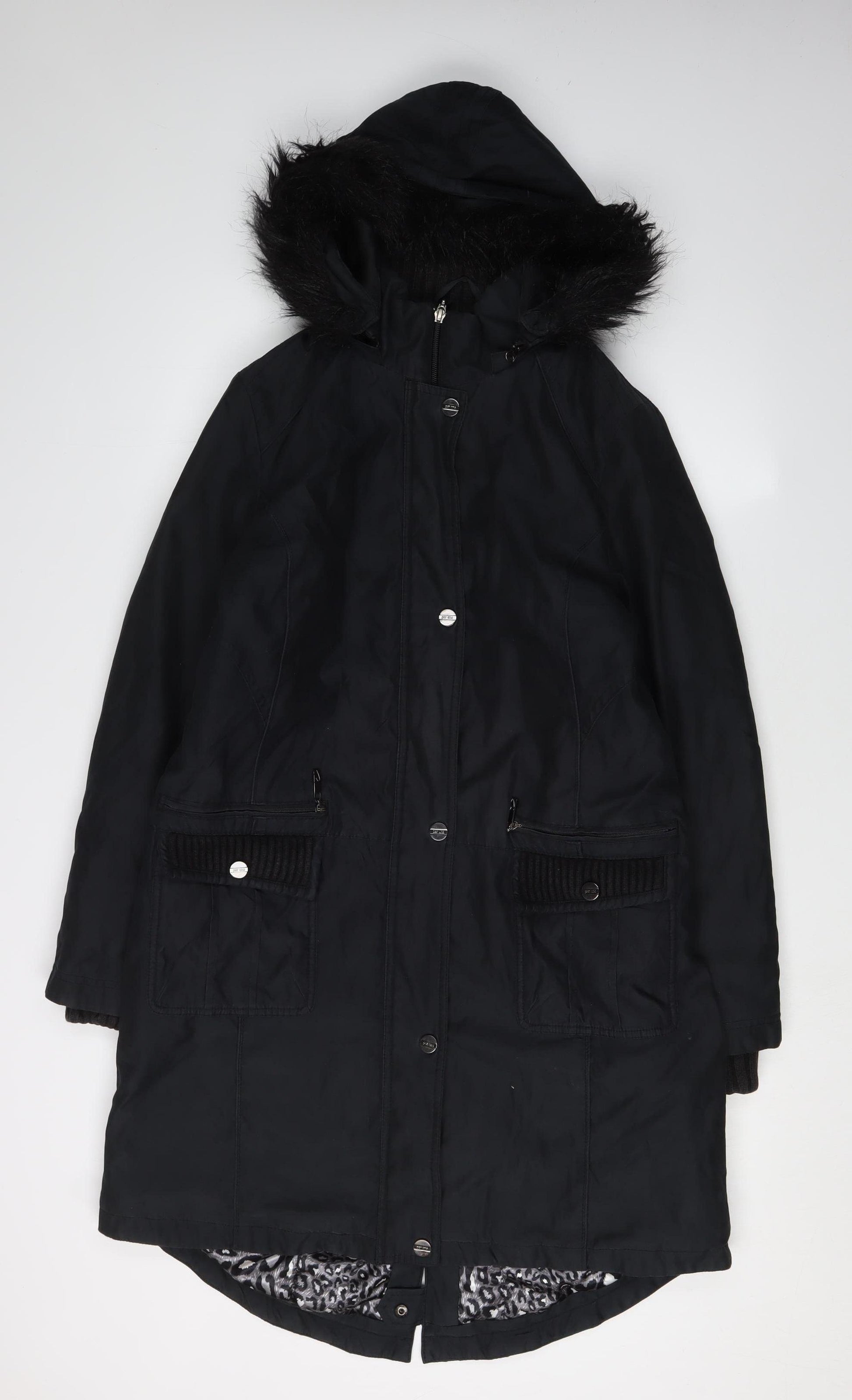 Experience ultimate comfort and style with this Per Una women's parka. Expertly crafted in a sleek black shade, this coat is perfectly designed for the colder months. With its long length and tailored fit, it offers both warmth and fashion. The polyester and cotton outer shell promises durability and water resistance, making it ideal for autumn and winter outings. This coat features a luxurious fur-trimmed hood, adding a touch of sophistication. Its lined interior ensures added insulation, while the animal print lining provides a stylish surprise. Equipped with convenient zip and button closures, and deep pockets, it's perfect for casual occasions. Embrace the blend of comfort and contemporary style with this elegant parka.