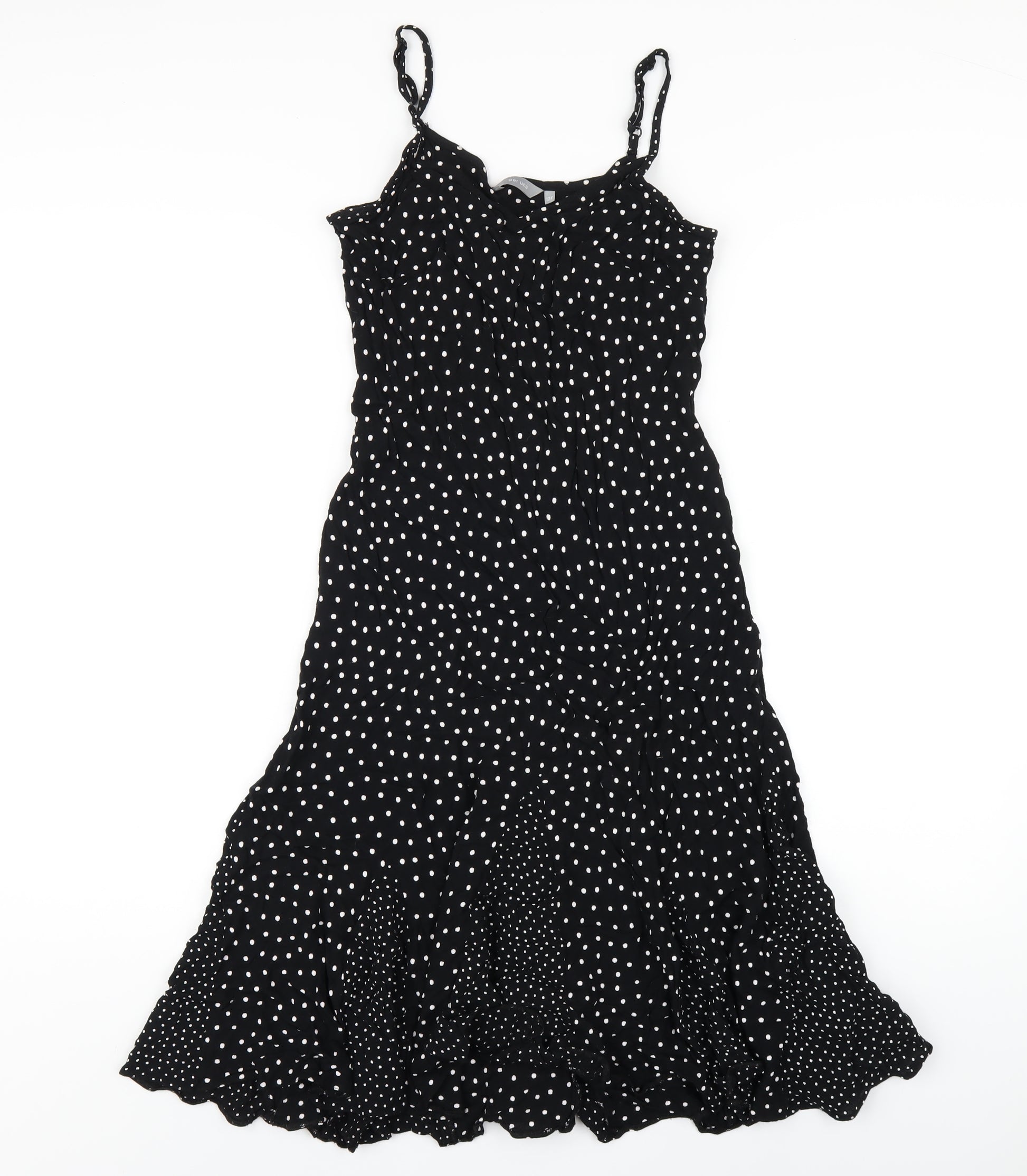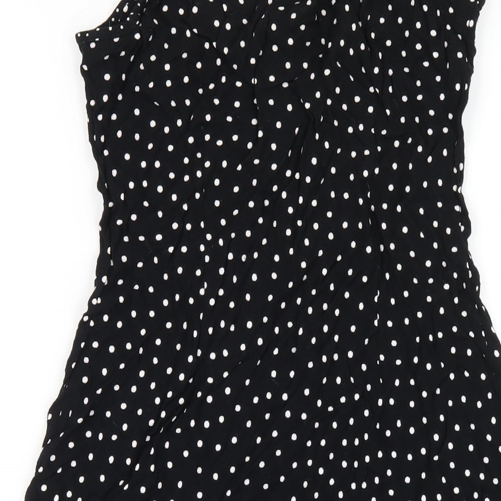 Womens Black Polka Dot Viscose A-Line Size 12 Round Neck Pullover