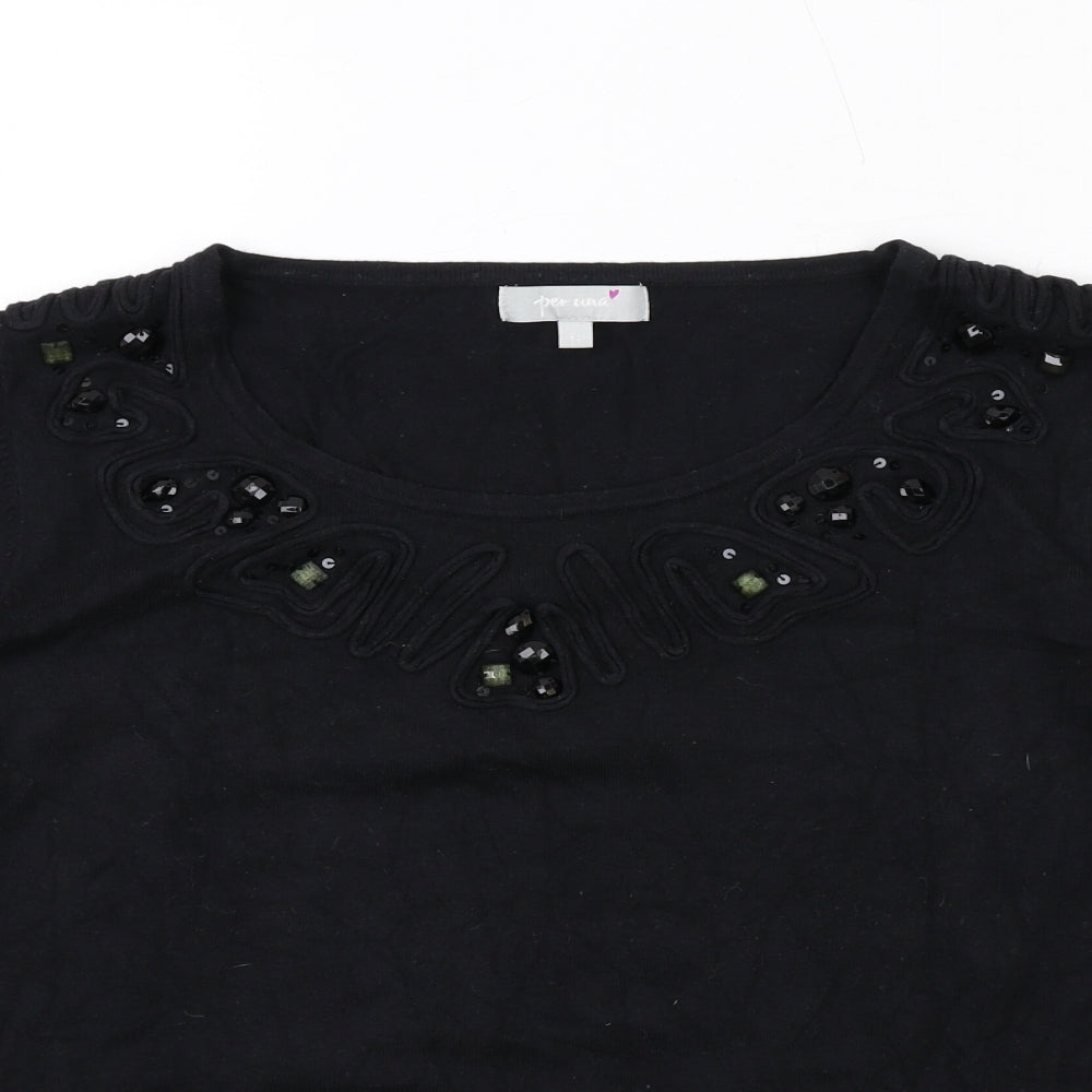 Womens Black Round Neck Viscose Pullover Jumper Size 14