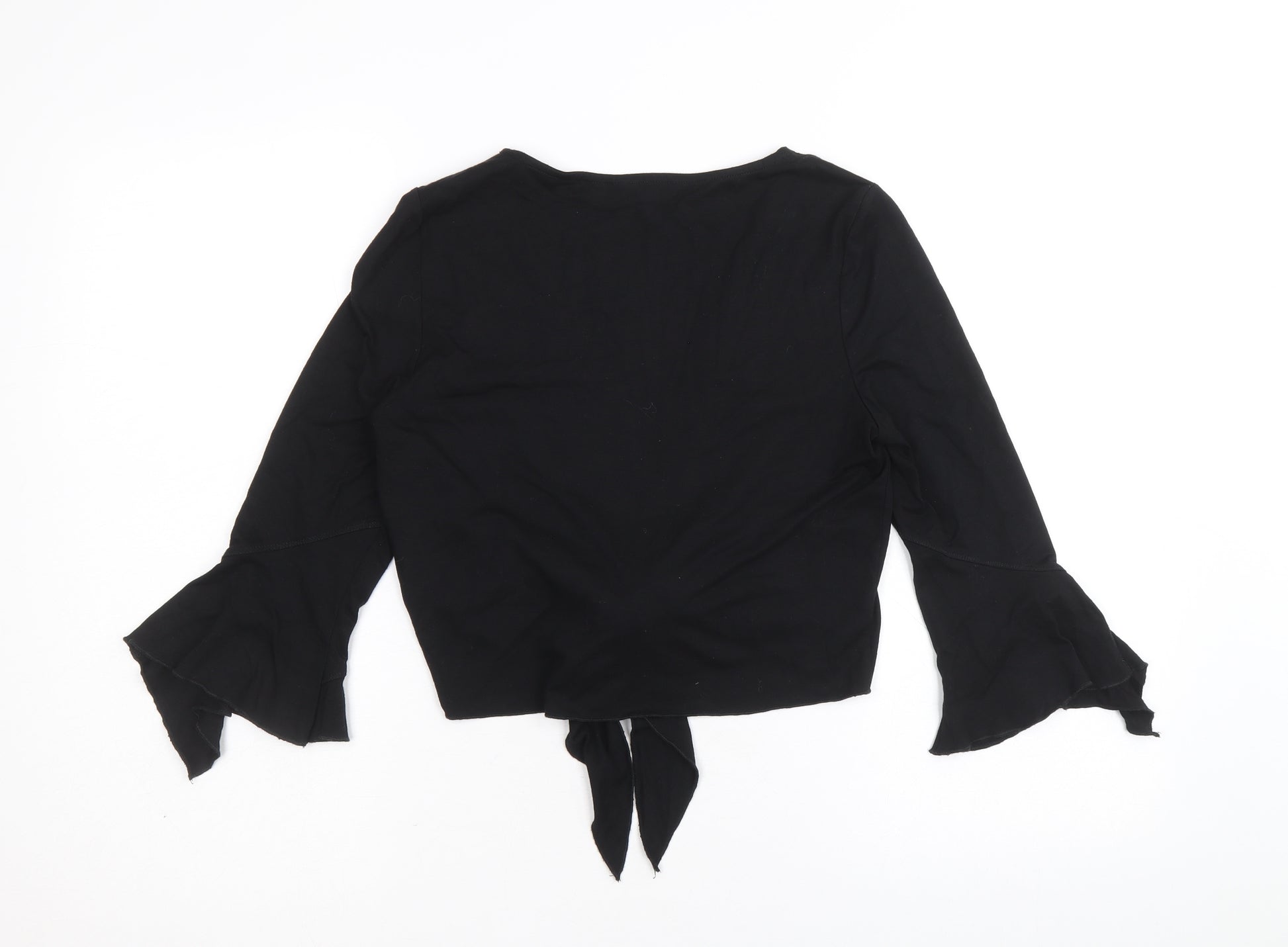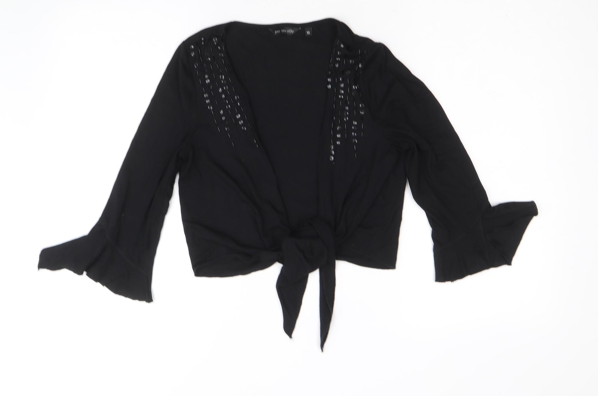 Womens Black V-Neck Polyester Shrug Jumper Size 10 - Tie Front Sequin