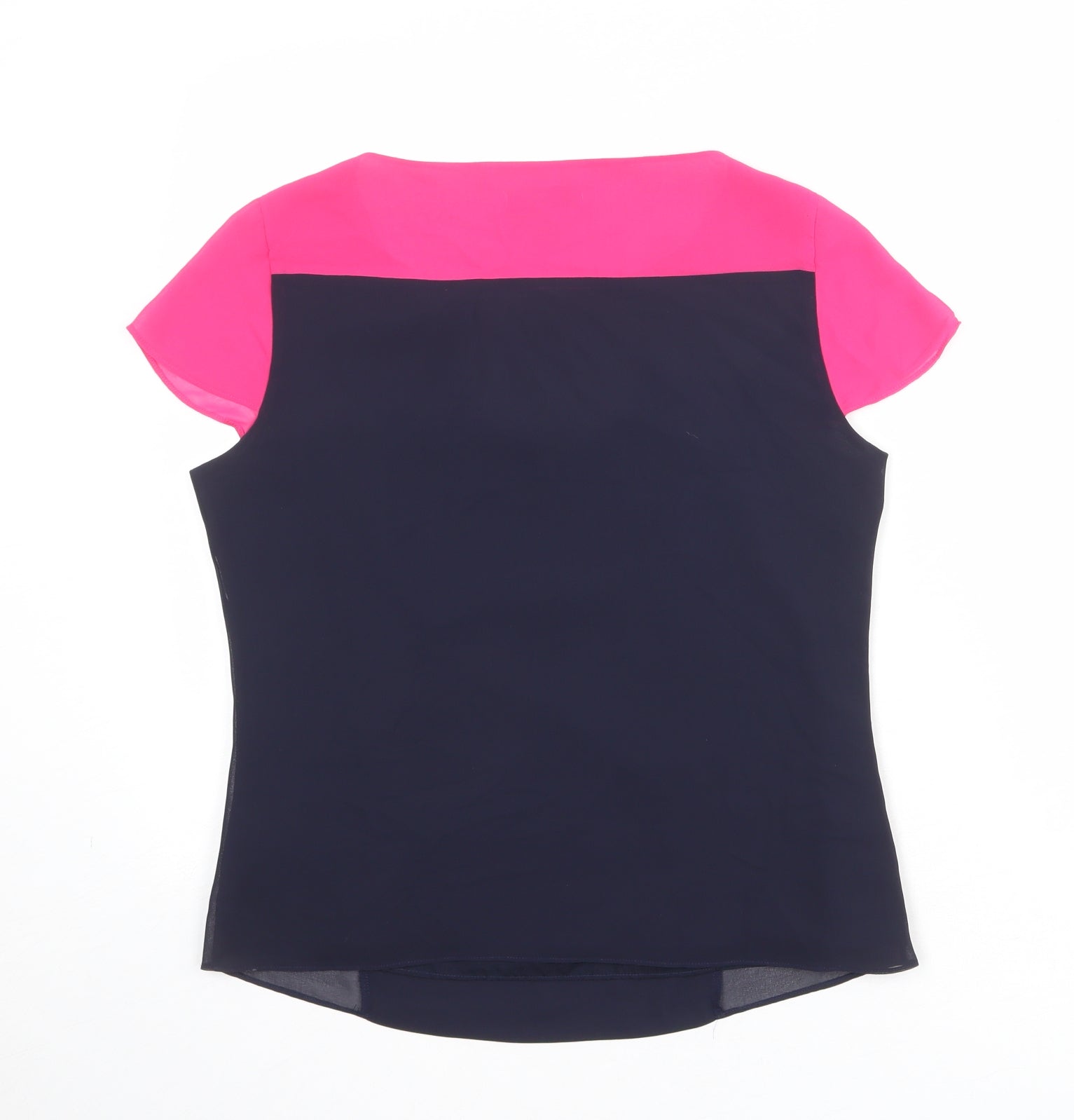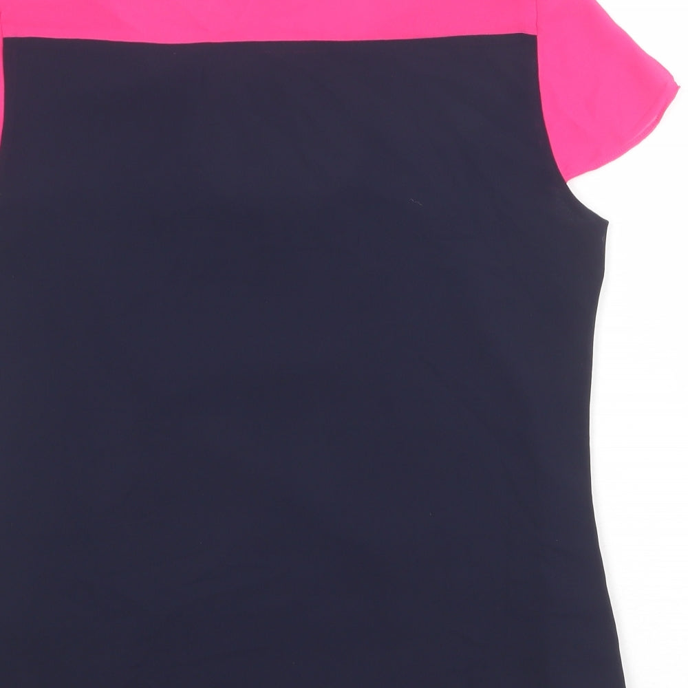 Womens Blue Colourblock Polyester Basic Blouse Size 10 Boat Neck