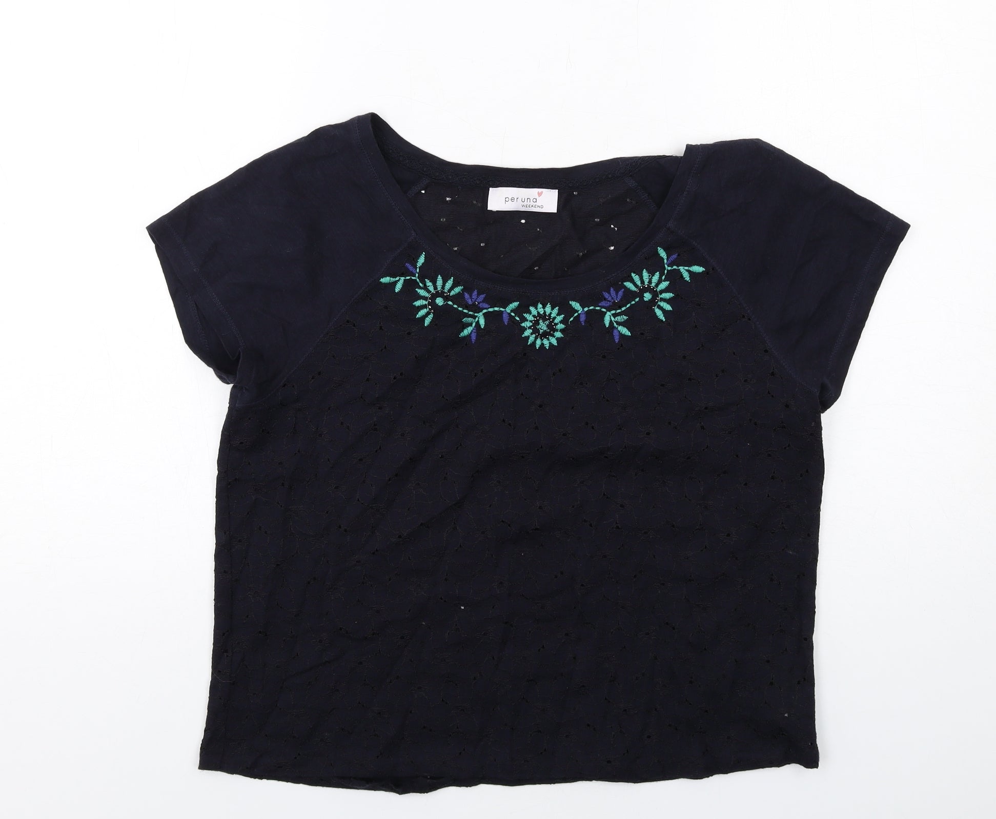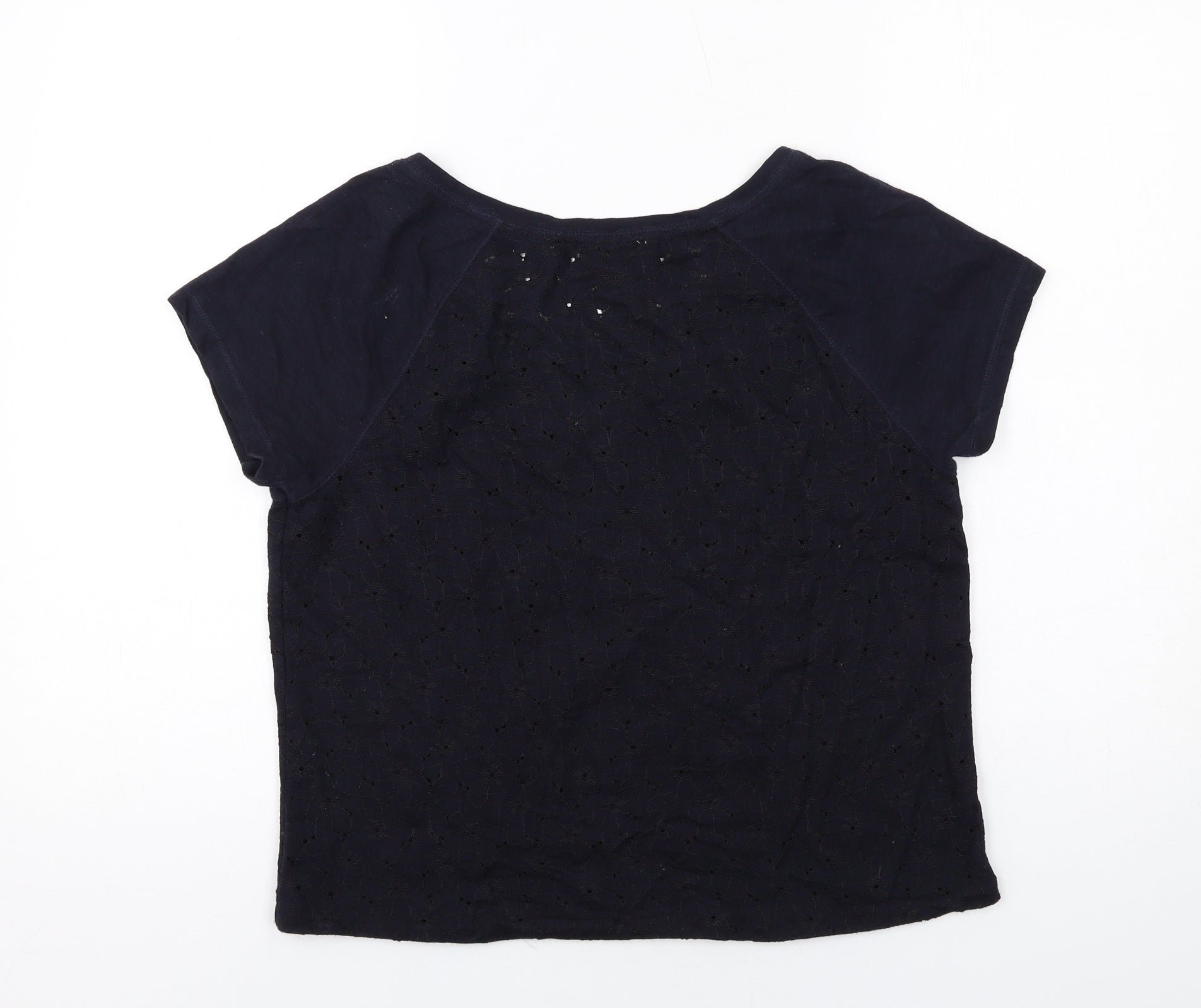 Womens Blue Cotton Basic T-Shirt Size 12 Round Neck