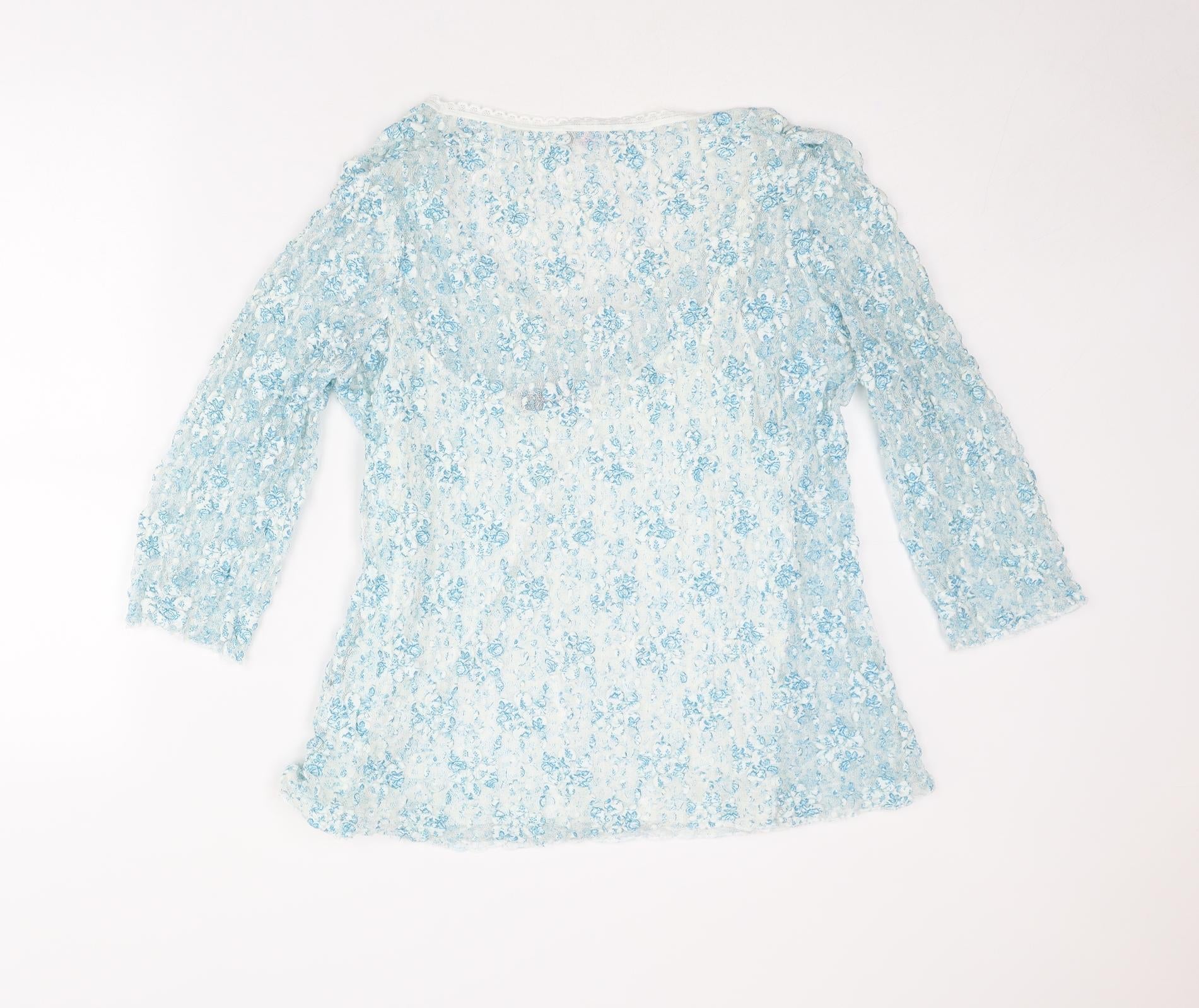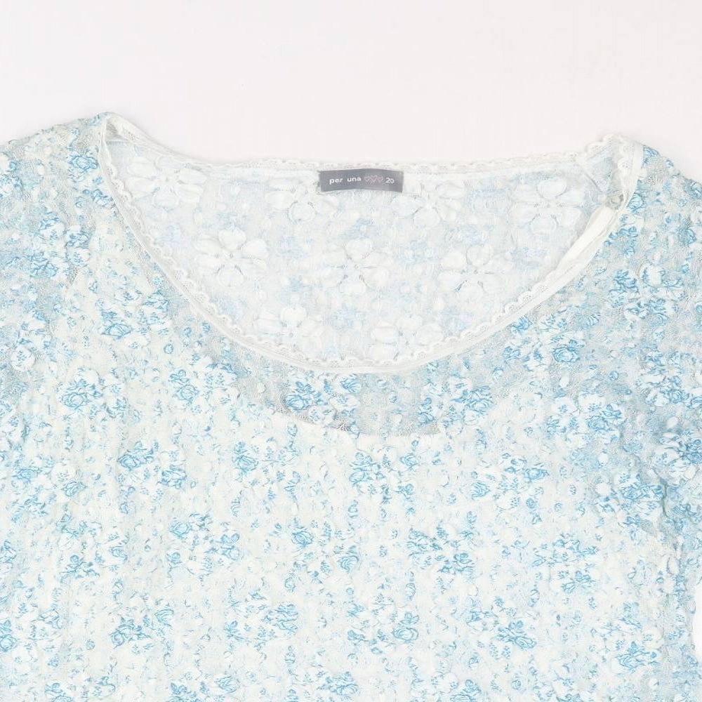 Womens Blue Floral Cotton Basic Blouse Size 20 Boat Neck