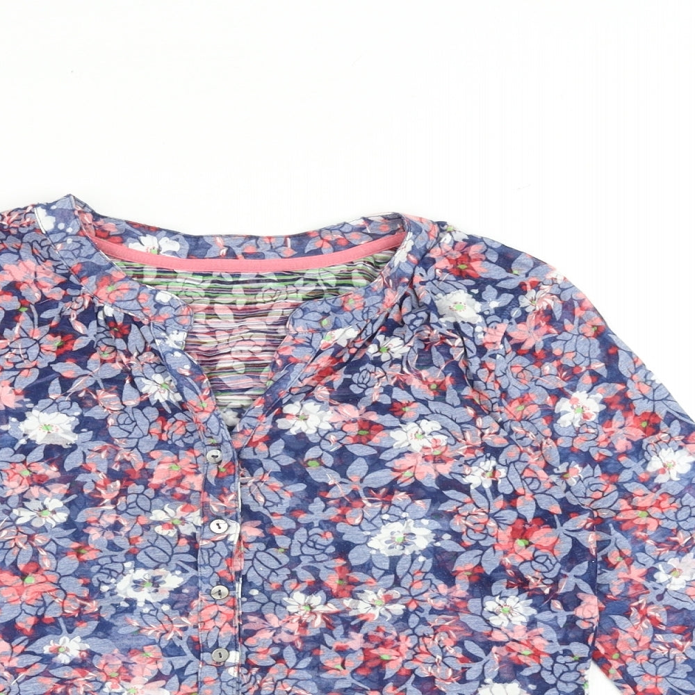 Womens Blue Floral Cotton Basic Button-Up Size 10 V-Neck