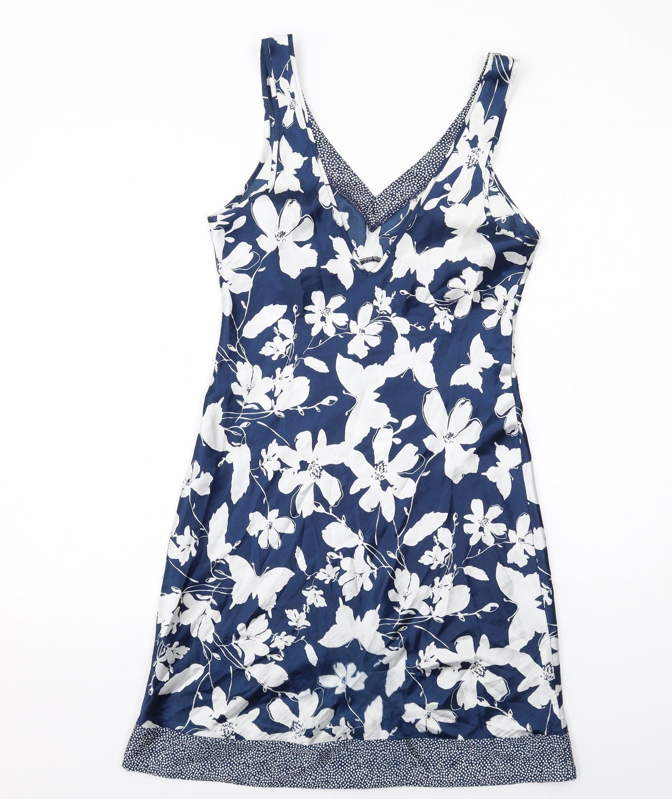 Womens Blue Floral Polyester Tank Dress Size 8 V-Neck Pullover