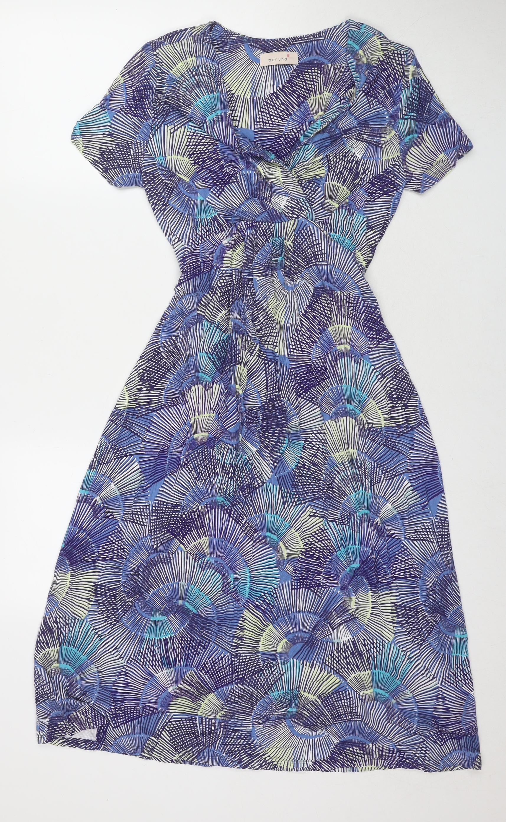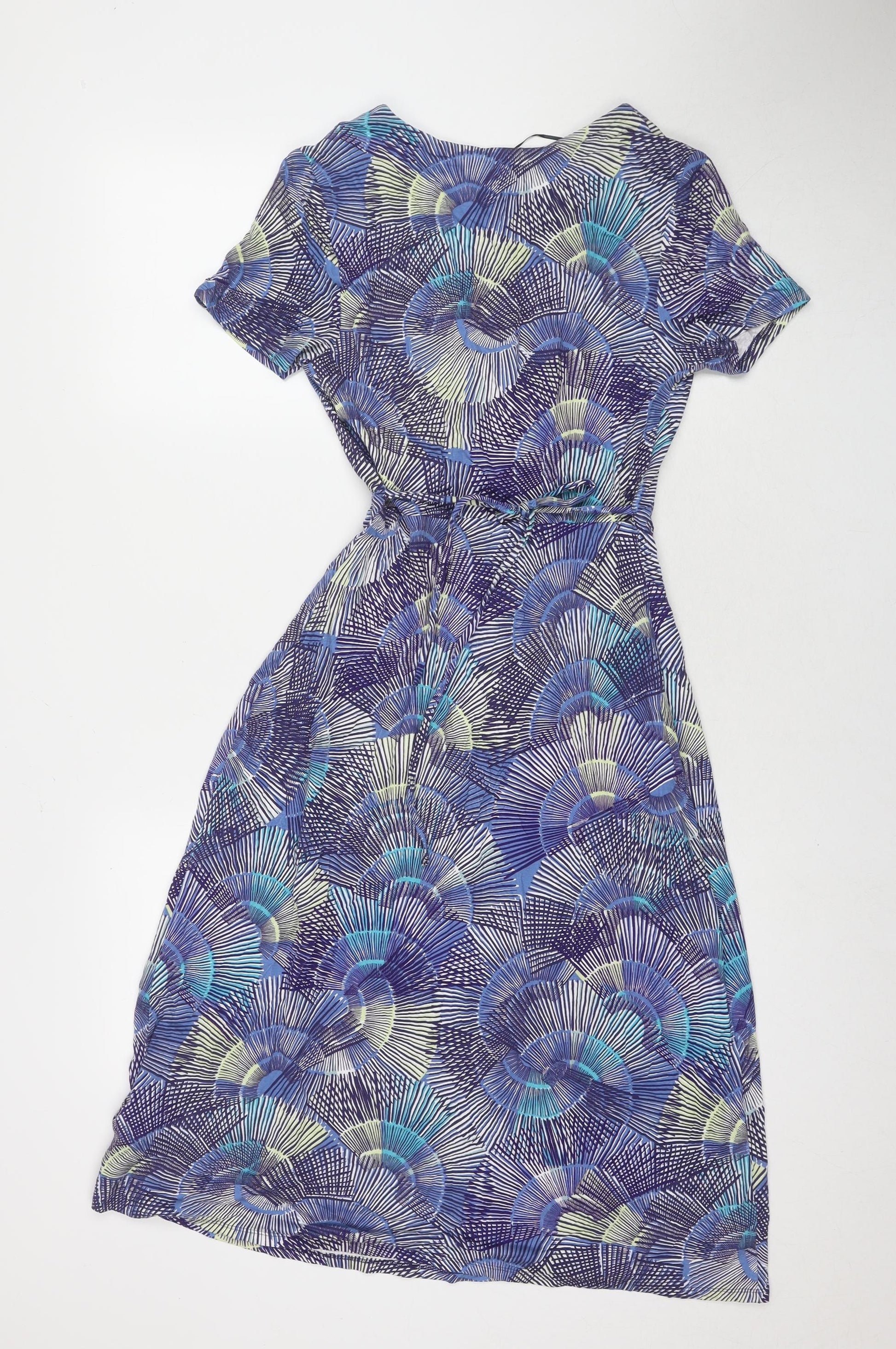 Womens Blue Geometric Viscose Fit & Flare Size 8 V-Neck Pullover
