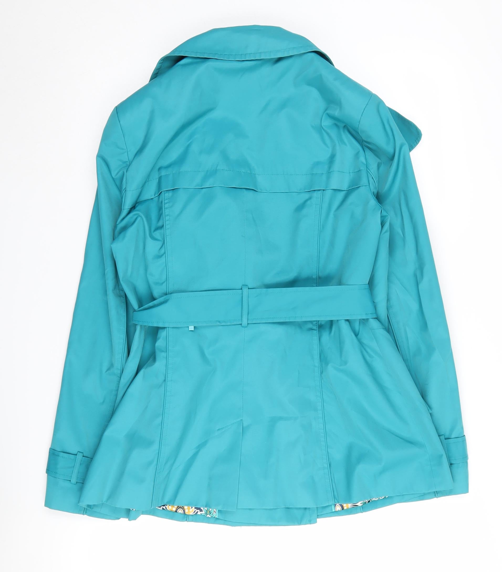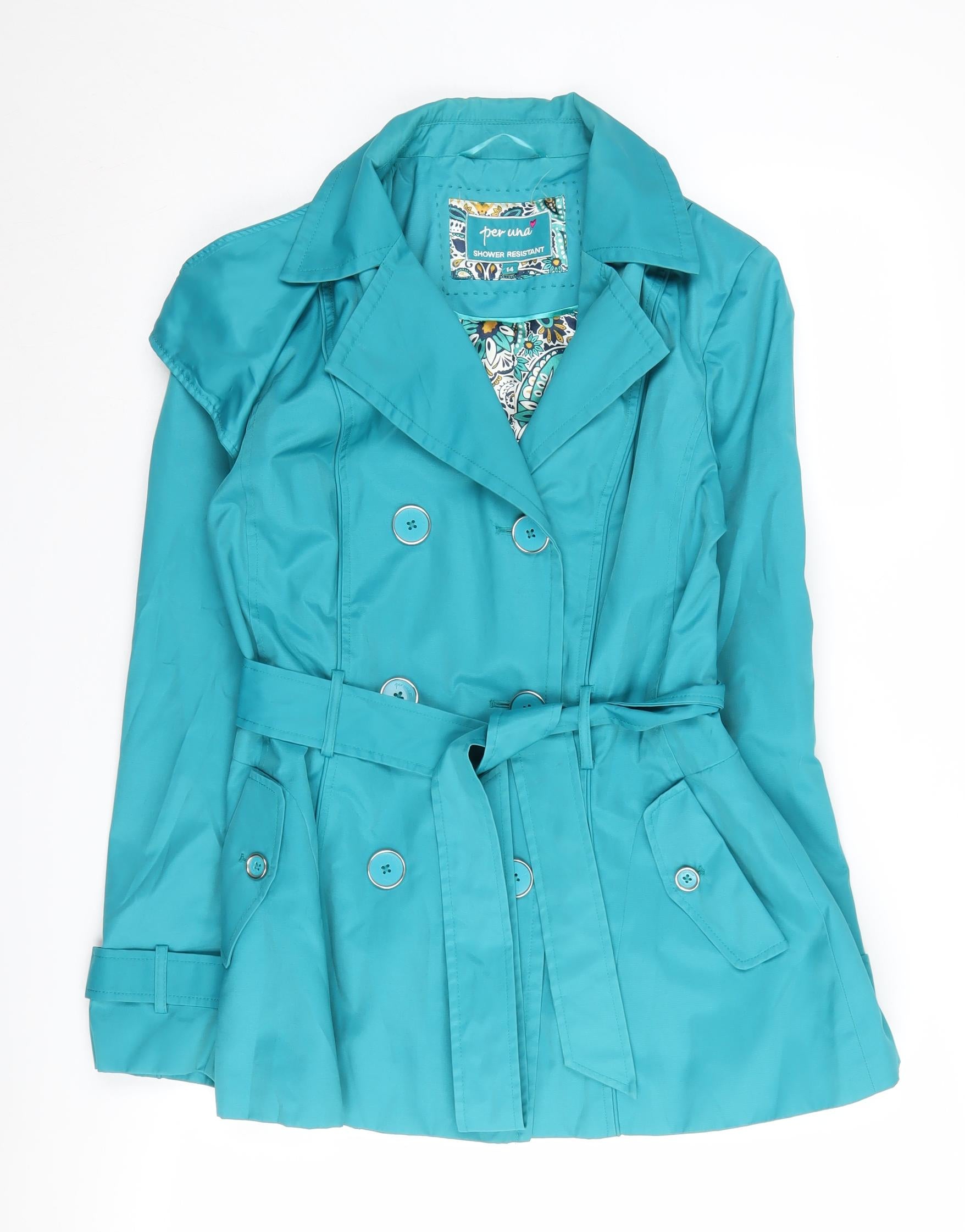 Enhance your wardrobe with this stylish and practical Per Una Women's Trench Coat in a vibrant blue. Ideal for both spring and autumn, this coat is crafted from a blend of 56% cotton and 44% polyester, making it durable and shower resistant. The mid-length style and classic design features add a touch of sophistication to any casual outfit. The coat is belted for an adjustable fit, with a collared neckline and button closure that offers a timeless appeal. Designed for women in a regular size 14, this coat ensures comfort and style. The polyester lining adds extra warmth and comfort, making it a perfect outerwear option for cooler days. Whether you're heading to a casual outing or simply running errands, this coat provides a chic layer to your ensemble. Despite minimal wear, it is in excellent condition, offering a sleek and polished look without any product tags. Machine washable, it promises easy maintenance, blending convenience with fashion. Elevate your everyday style with this must-have trench coat.
