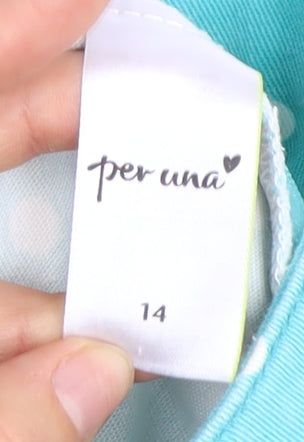 Embrace the charm of effortless style with this Per Una Women's Blue Polka Dot A-Line Skirt, a delightful addition to your fashion repertoire. Crafted from a blend of high-quality cotton and elastane, this skirt offers both comfort and a flattering fit for everyday wear. The playful polka dot pattern adds a touch of whimsy, making it perfect for those casual outings where fun meets fashion. The A-line silhouette is combined with practical pockets, enhancing both functionality and style. The button accents add a subtle yet stylish detail, complementing the overall elegant design. Sized at UK 14, this skirt falls under the regular size category, ensuring a comfortable fit for everyday adventures. Ideal for casual occasions, this graceful piece pairs effortlessly with a variety of tops, making it a versatile wardrobe staple. Whether you're heading out for a brunch date or a stroll through the park, this skirt is your go-to for a chic, carefree look. Despite being in excellent condition with no visible defects, it exhibits a timeless appeal that remains unworn. Capture the essence of youthful vibrancy and elegance with this Per Una creation, and step out in style.