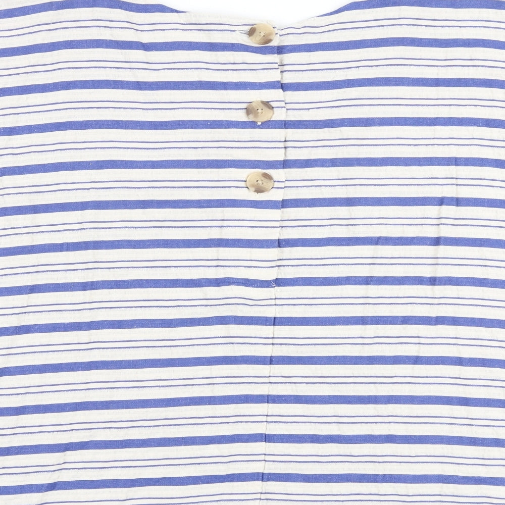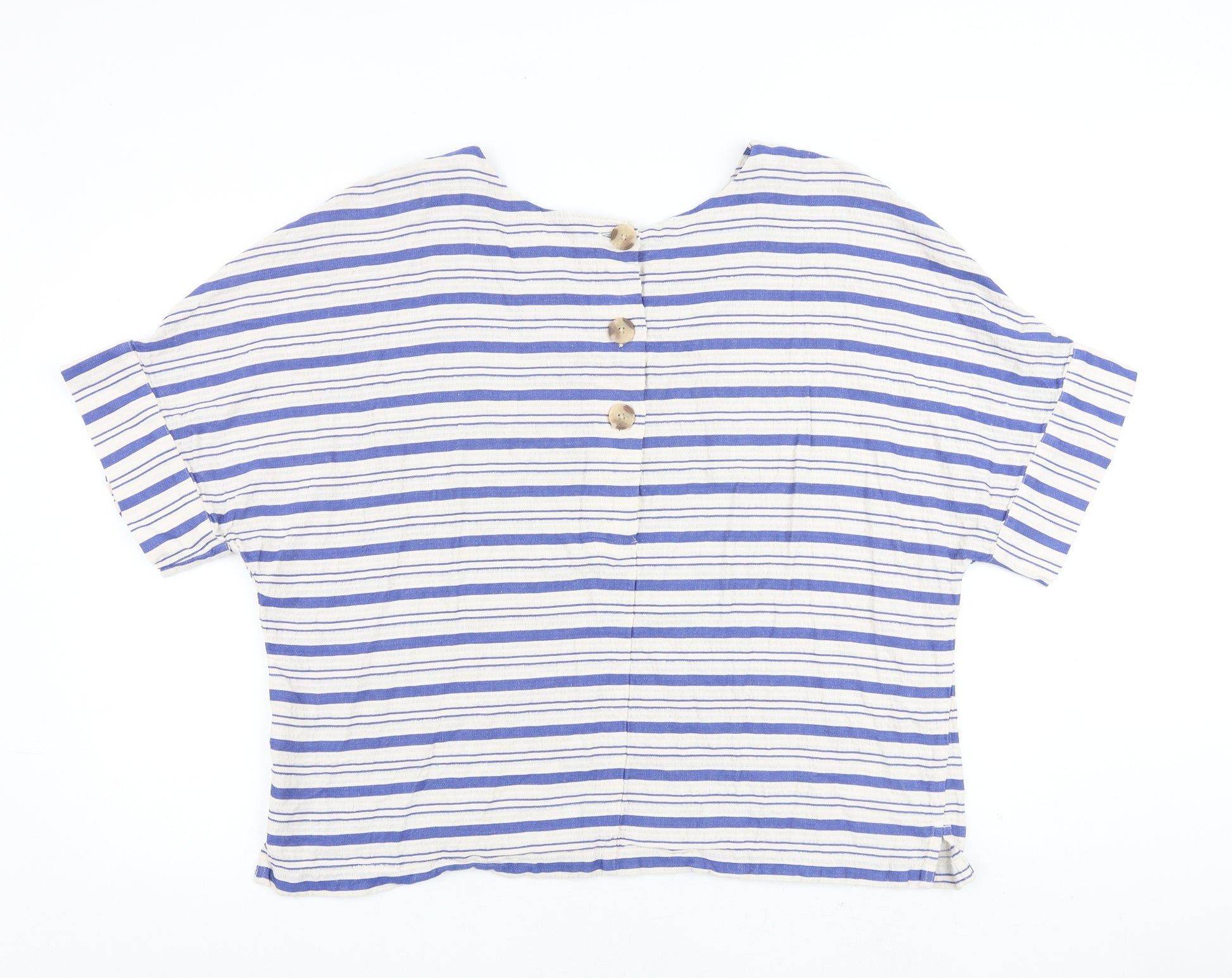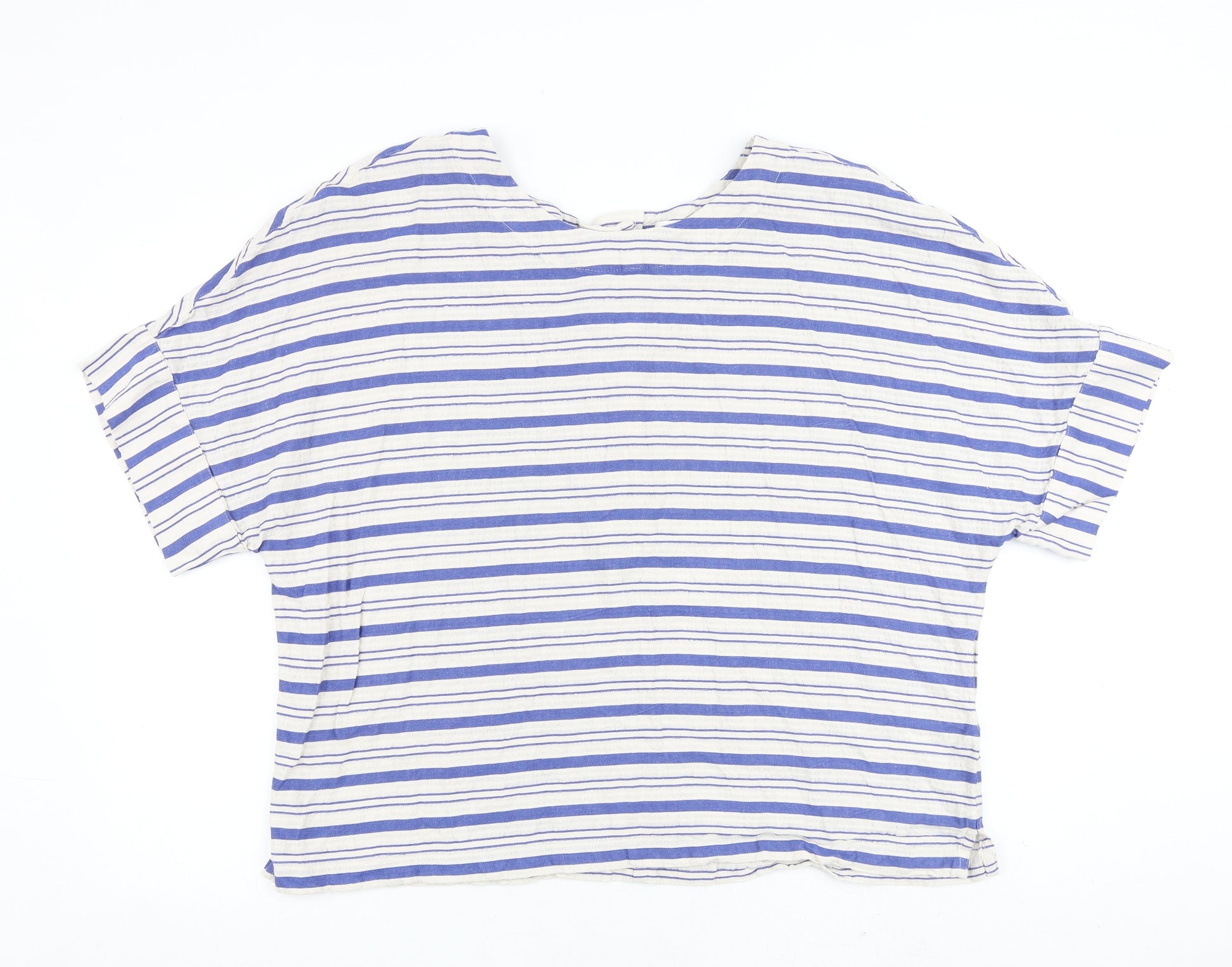 Womens Blue Striped Cotton Basic T-Shirt Size 22 Round Neck