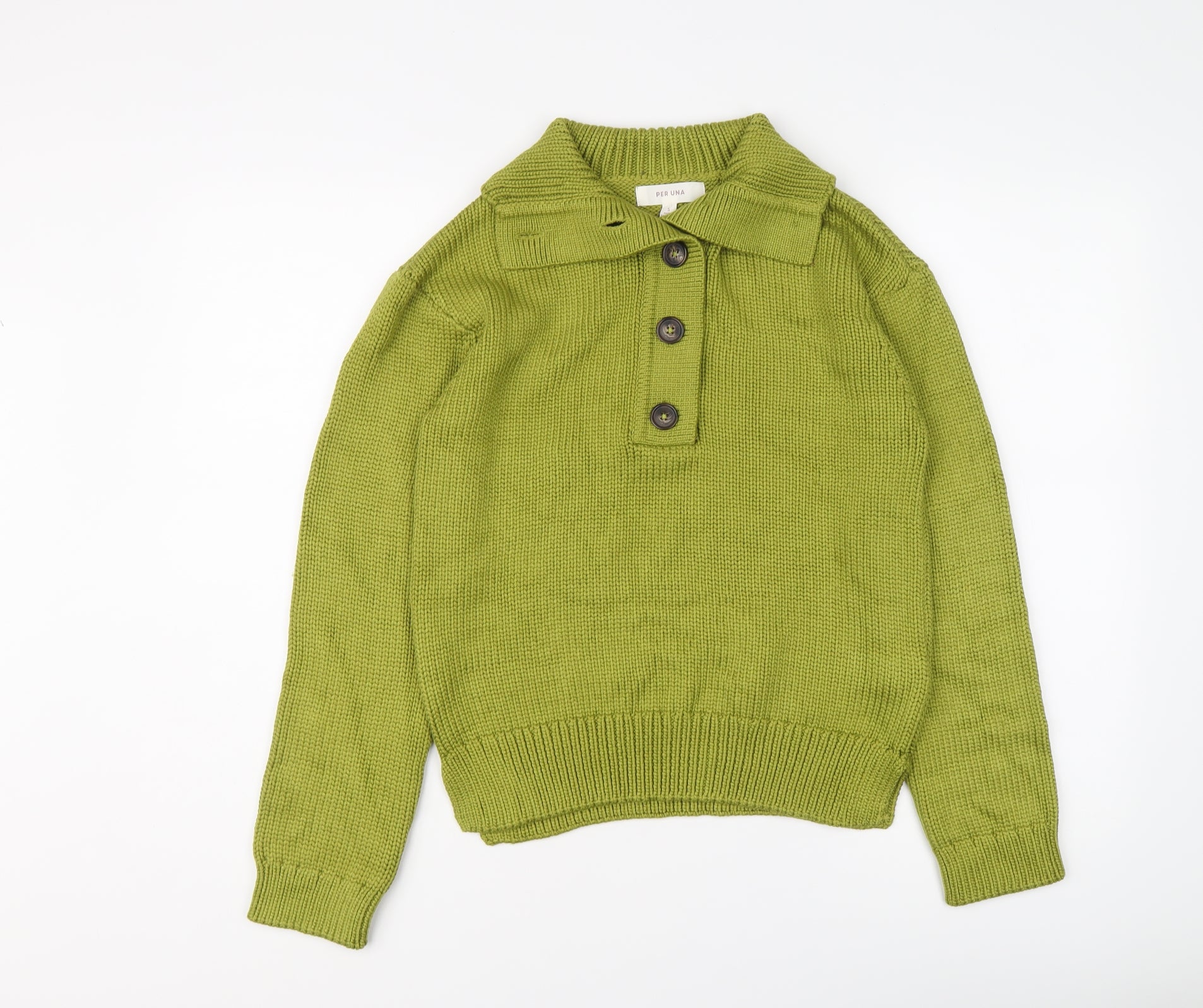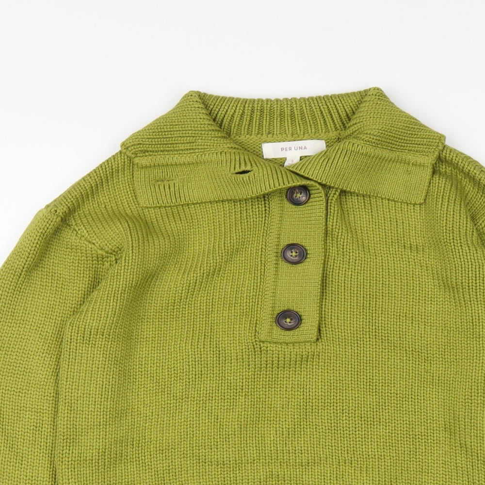 Womens Green Collared Viscose Henley Jumper Size S