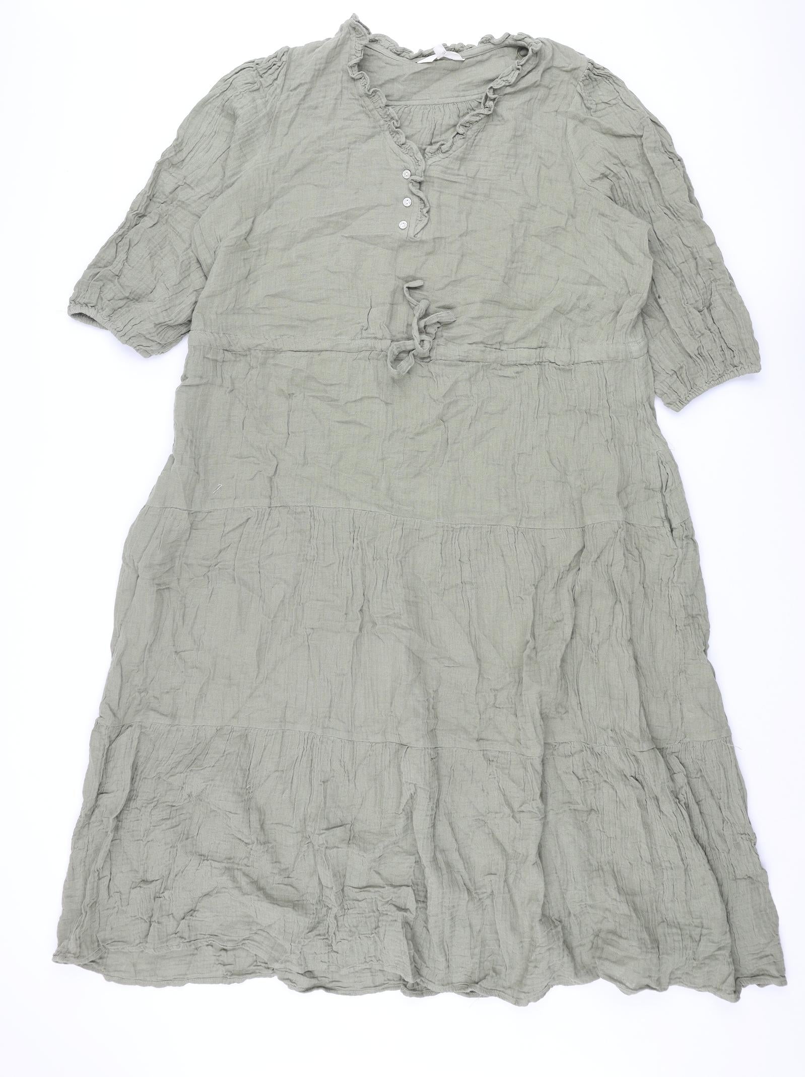 Womens Green Cotton Shift Size 16 V-Neck Button - Drawstring Waist